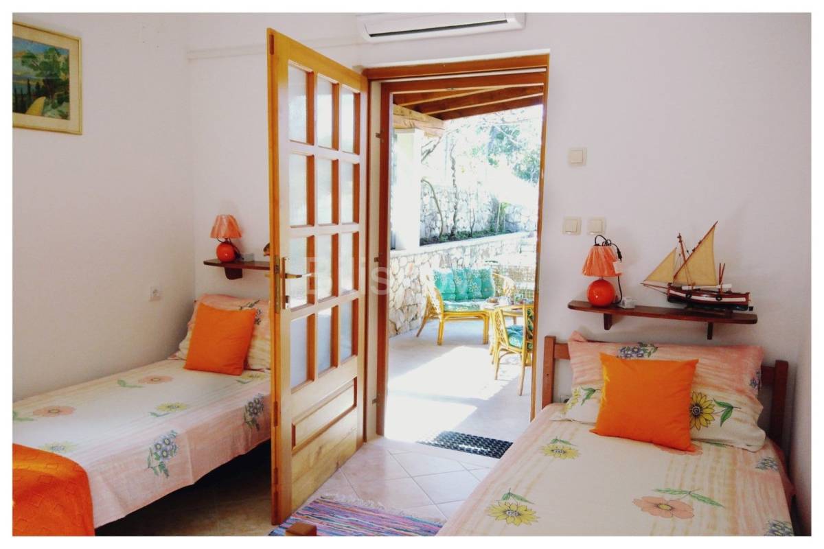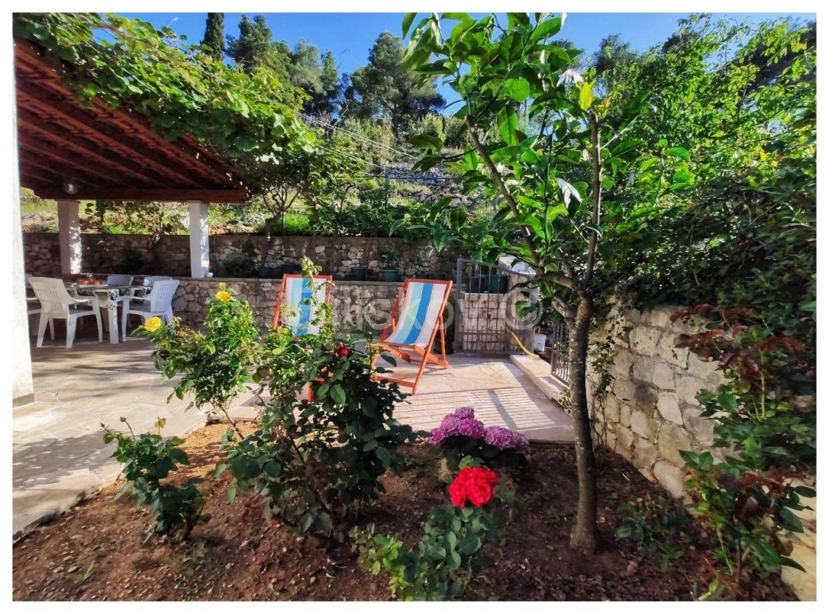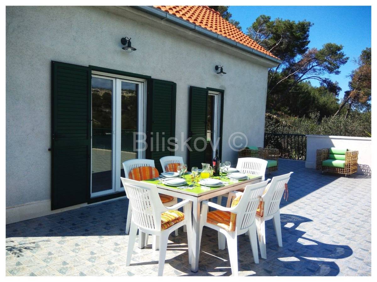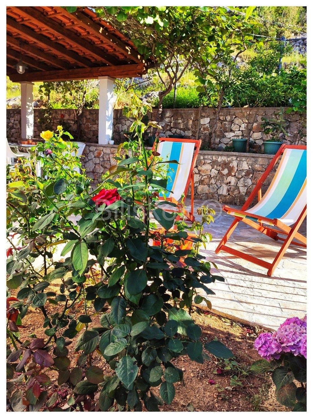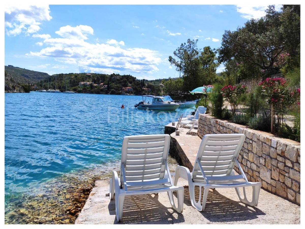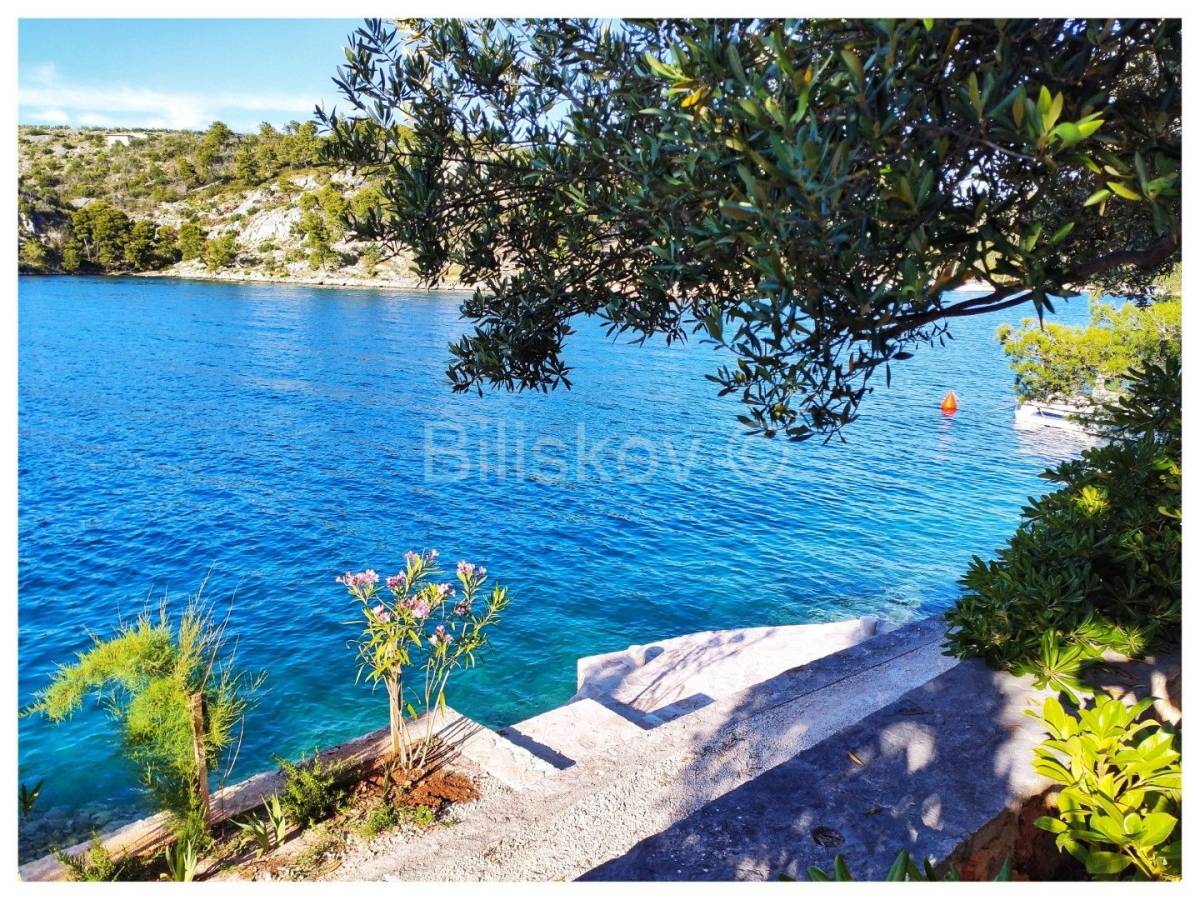 Položena na parceli od cca. 580 m2, okružena borovom šumom, maslinama, uređenim vrtom, kamenim zidovima, sa direktnim pristupom moru.