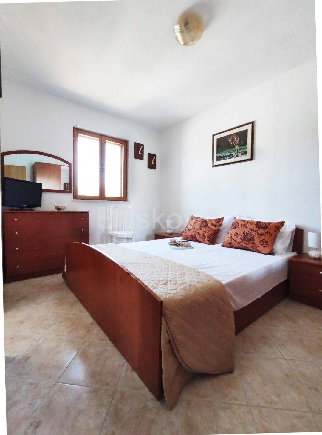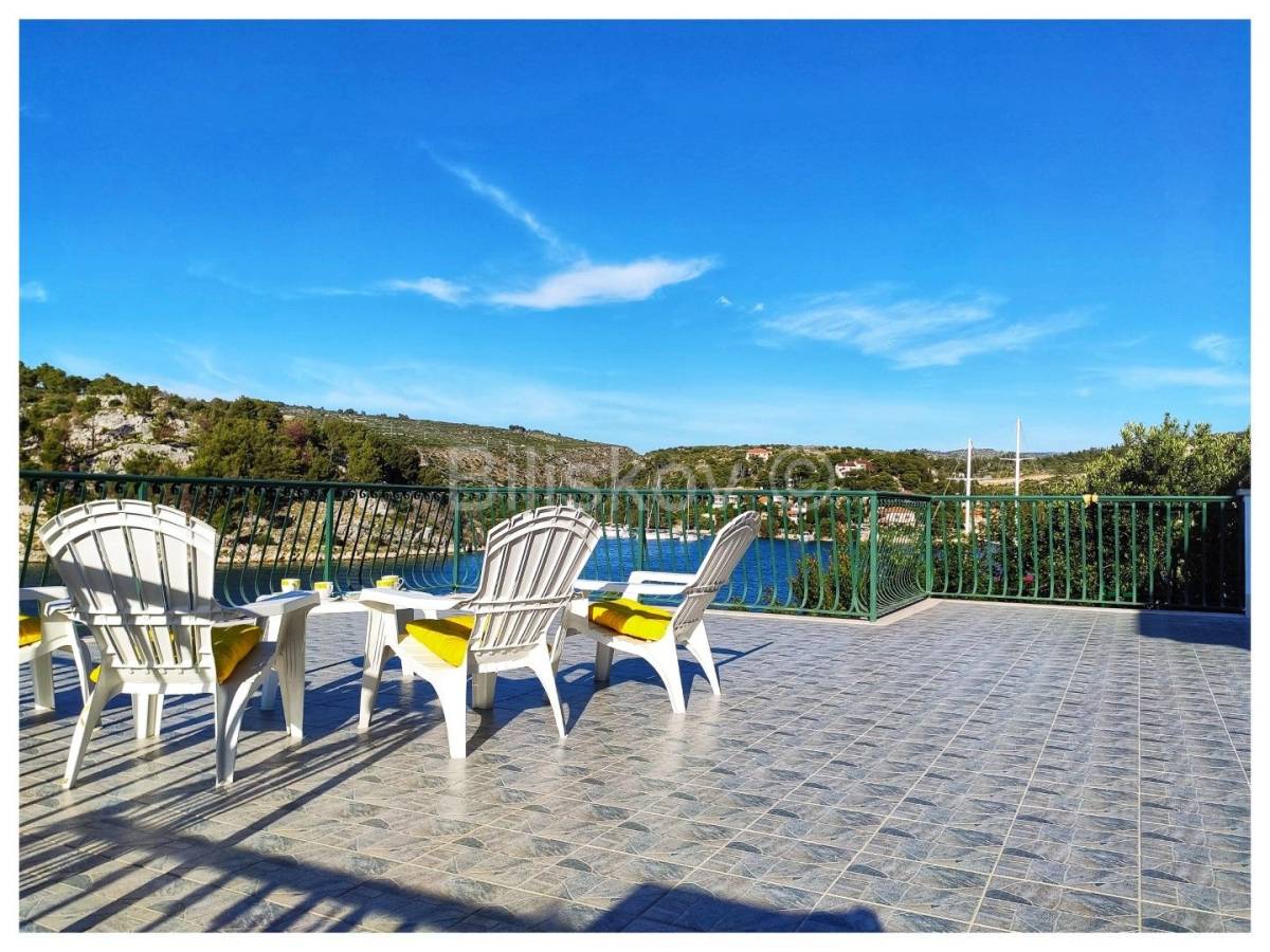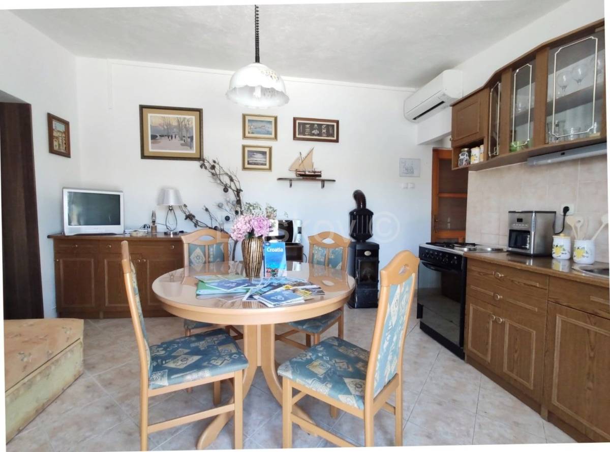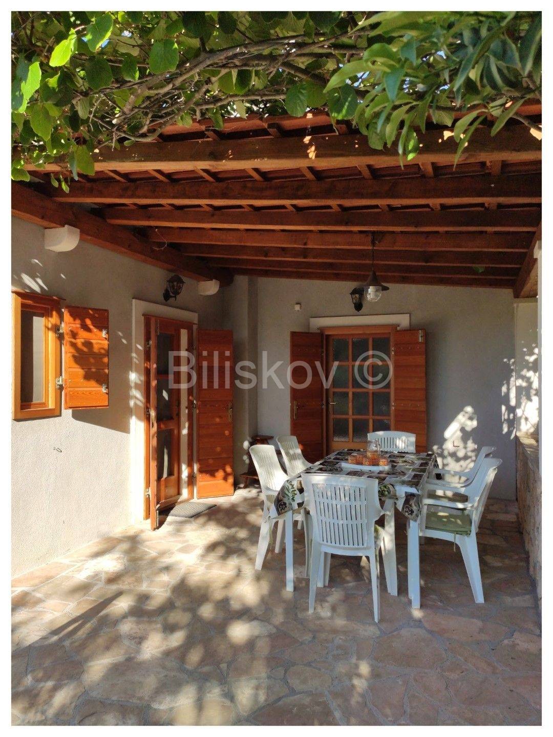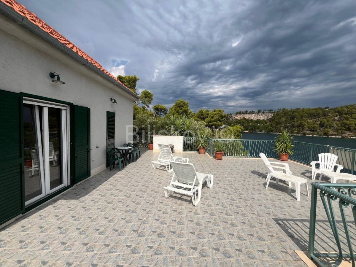 Položena na parceli od cca. 580 m2, okružena borovom šumom, maslinama, uređenim vrtom, kamenim zidovima, sa direktnim pristupom moru.