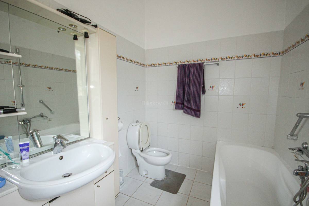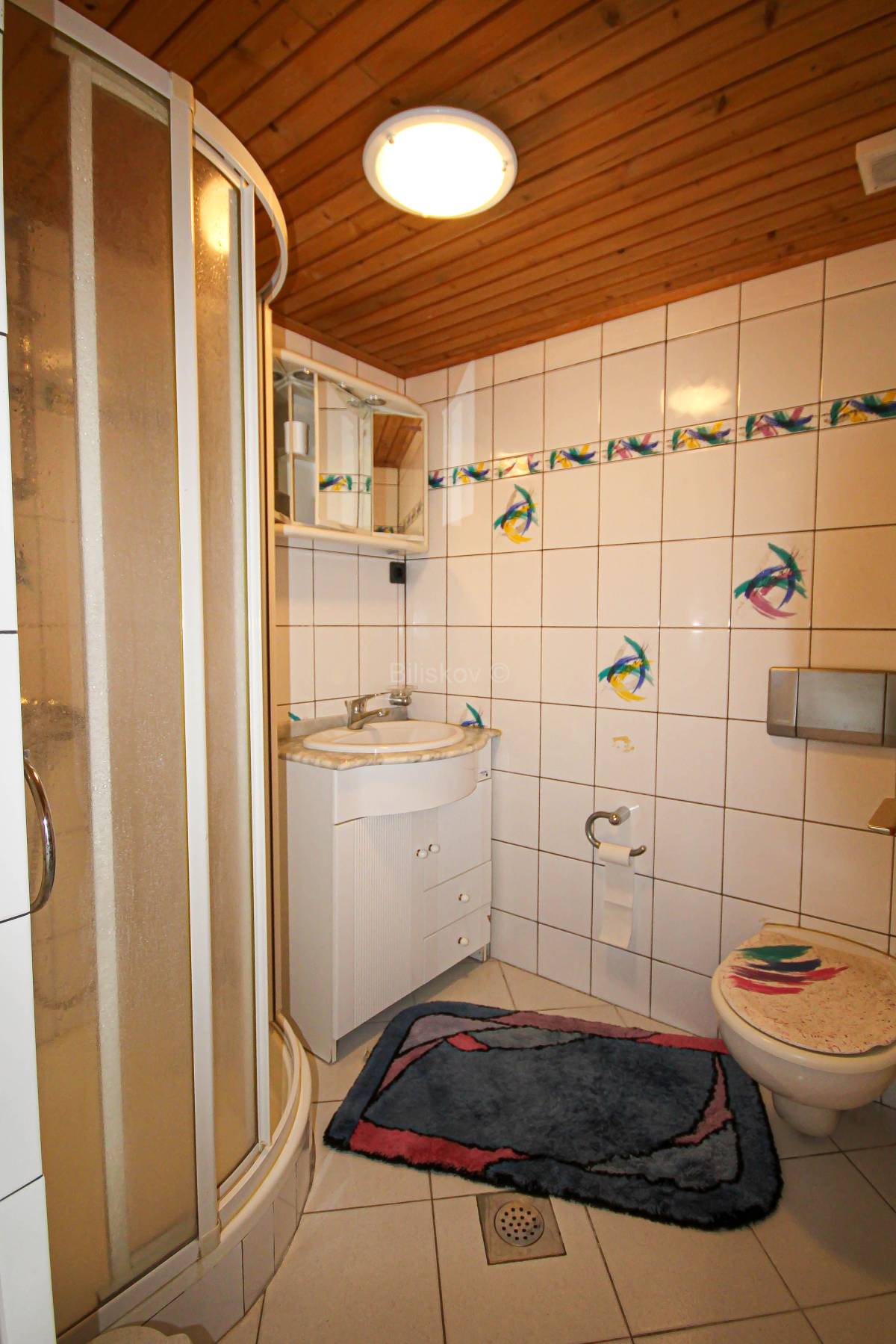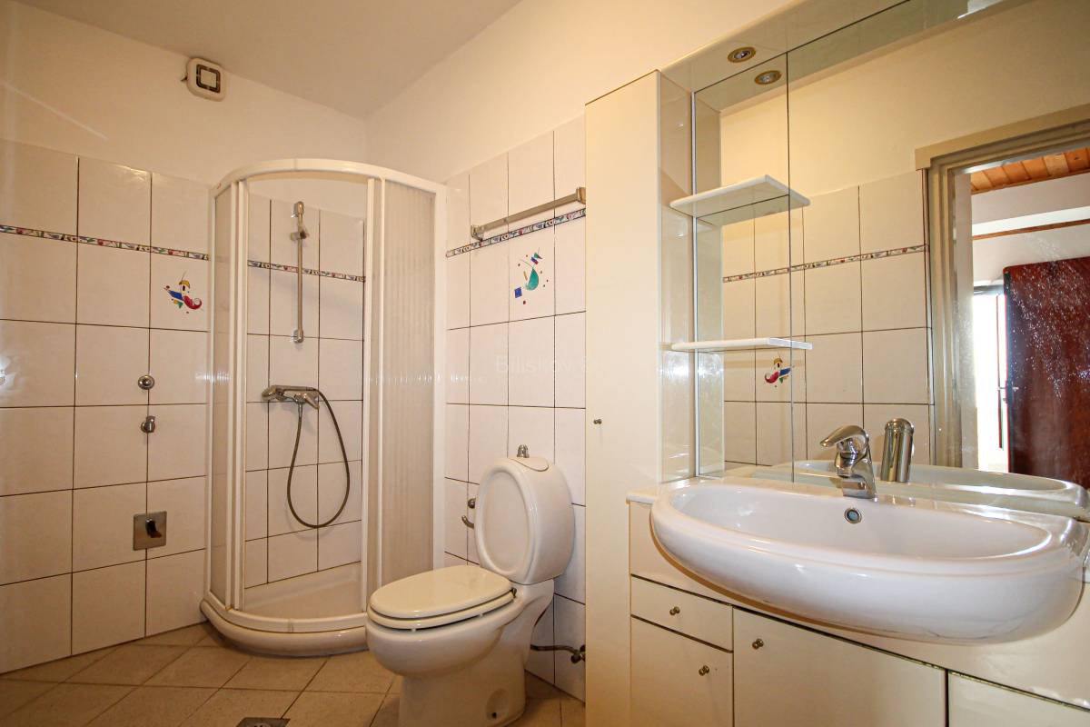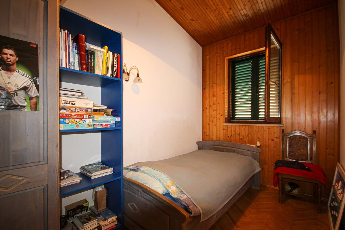 Na prvom katu se nalazi stan koji se sastoji od dnevnog boravka, kuhinje sa blagovaonicom, tri spavaće sobe te dvije kupaonice.