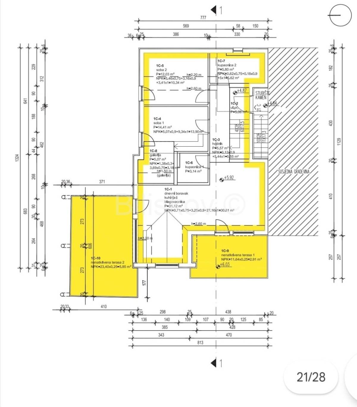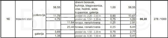 Trosoban penthouse površine 86,20 na 2. katu zgrade sagrađene 2023. godine.