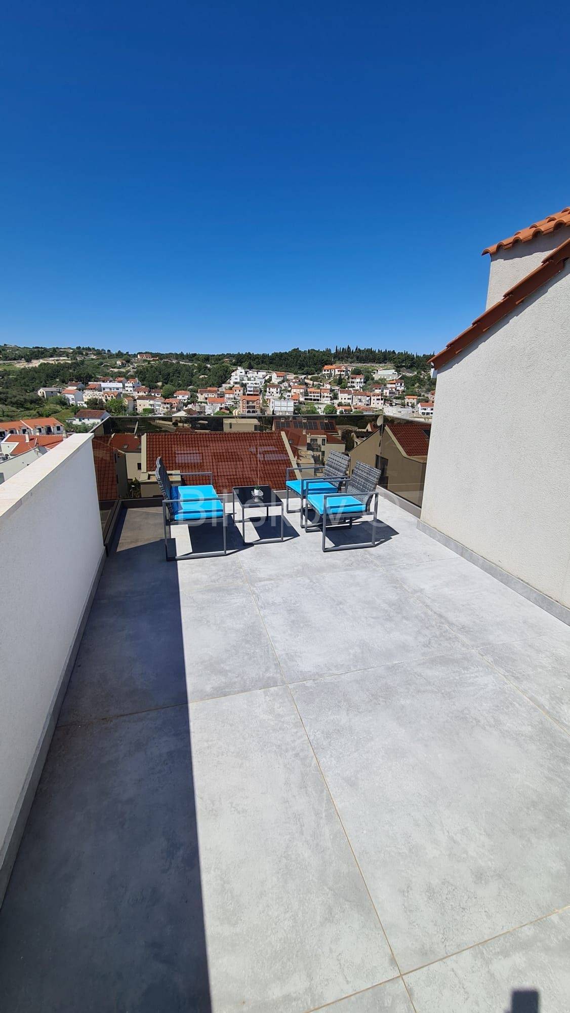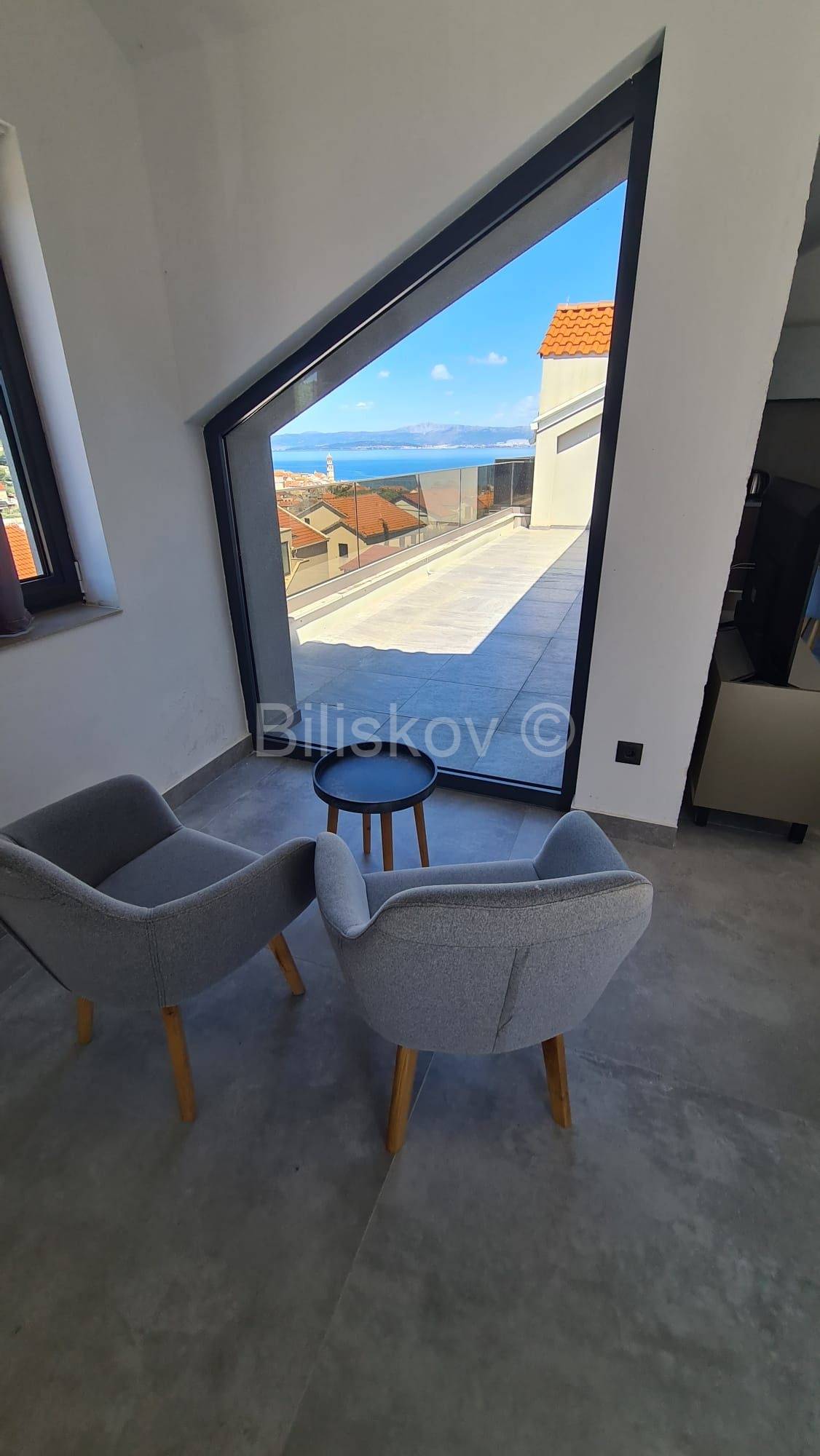 Zbog svoje četverostrane orijentacije, stan je iznimno prozračan i svijetao, a s terase se pruža prekrasan pogled na more.