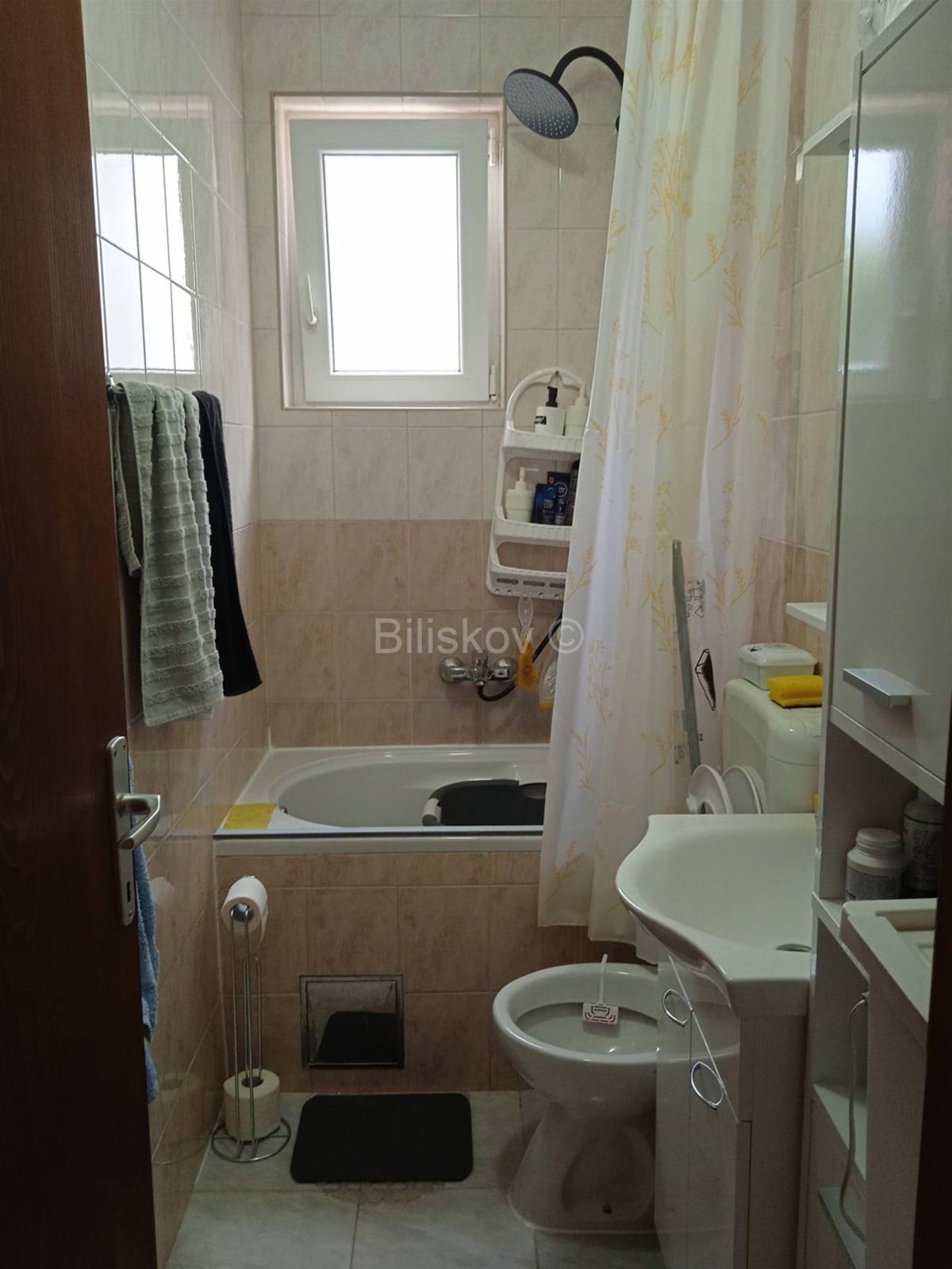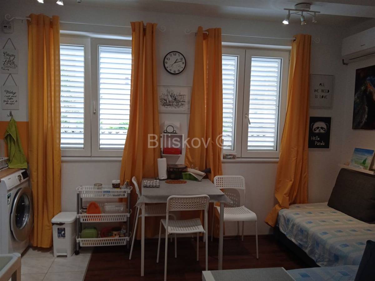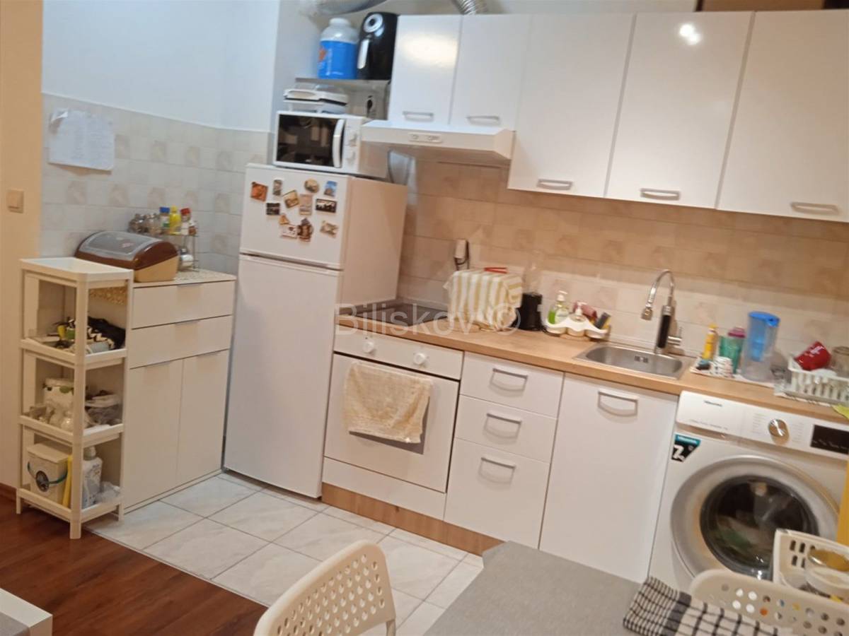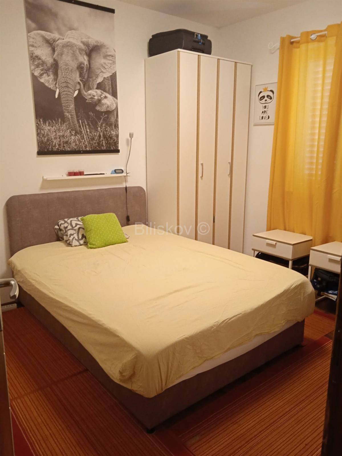 Simpatičan dvosobni stan površine 33 m² smješten je u prizemlju manje zgrade izgrađene 2010. godine. Stan se sastoji od hodnika, spavaće sobe, dnevnog boravka, kupaonice s WC-om i kuhinje. Pripada mu i terasa površine 11 m² te jedno vanjsko parkirno mjesto.