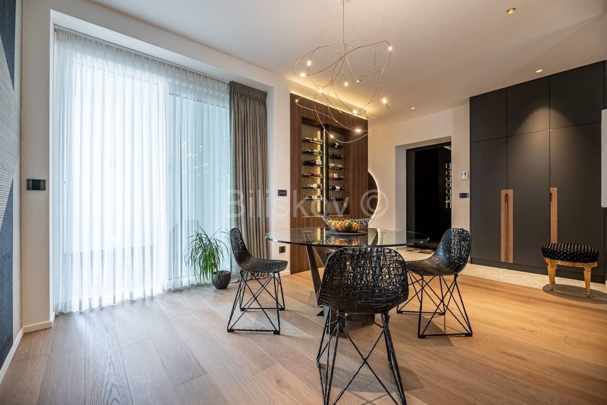 Od opreme u stanu ugrađena su protuprovalna vrata sa skenerom prsta, betonska deka, pametno upravljanje, toplinska pumpa za pasivno podno grijanje i pasivno stropno hlađenje, odvlaživač zraka, uređaj za odstranjivanje kamenca vode (depurator), troslojna aluminijska stolarija, vrhunska rasvjeta sa senzorom pokreta, električne rolete, kamin, Miele kućanski aparati,…