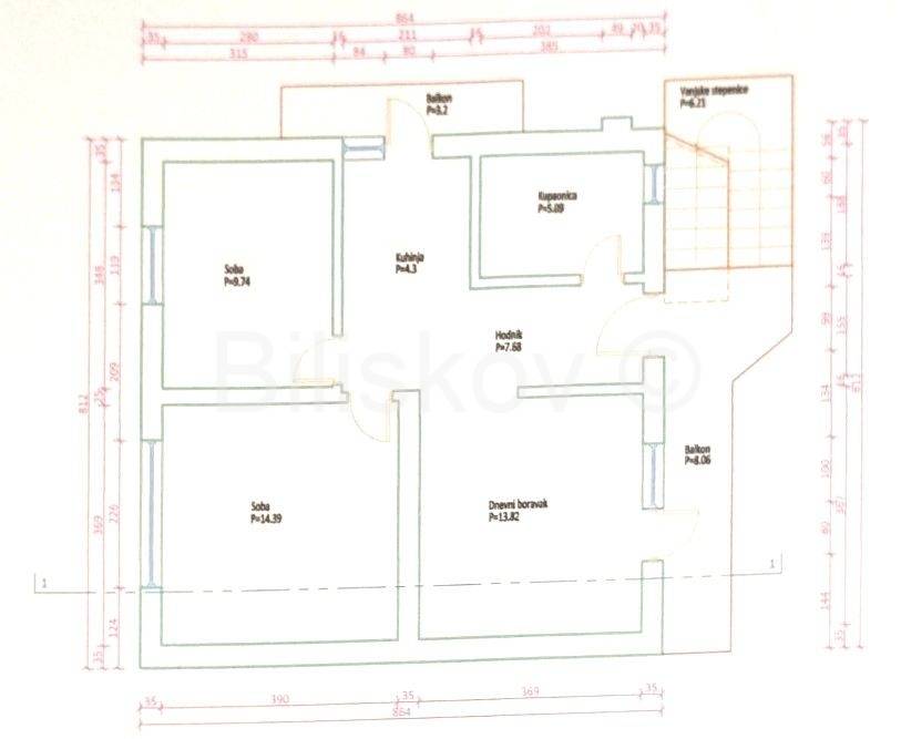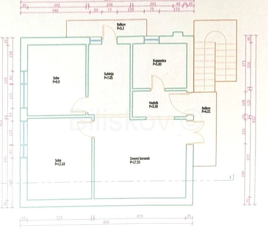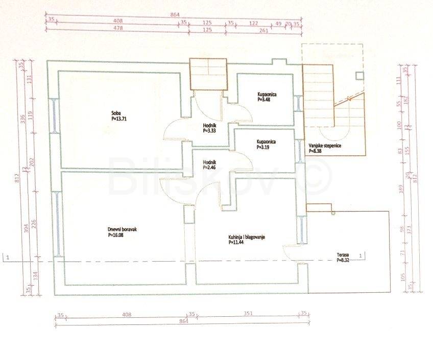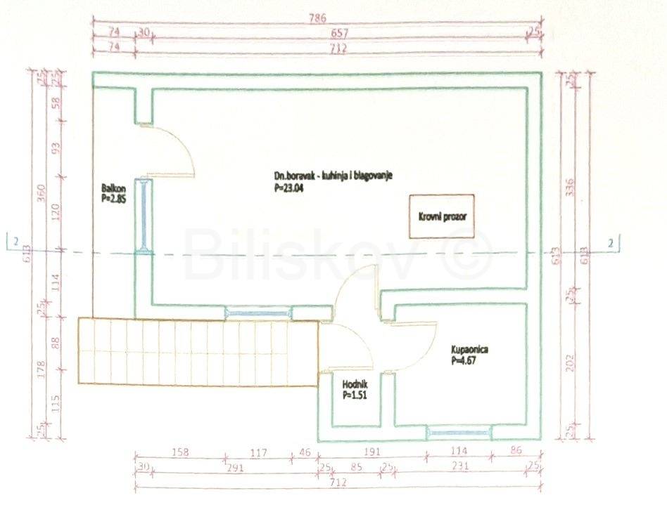 Prizemlje: jednosobni i dvosobni stan ukupne površine 62 m2