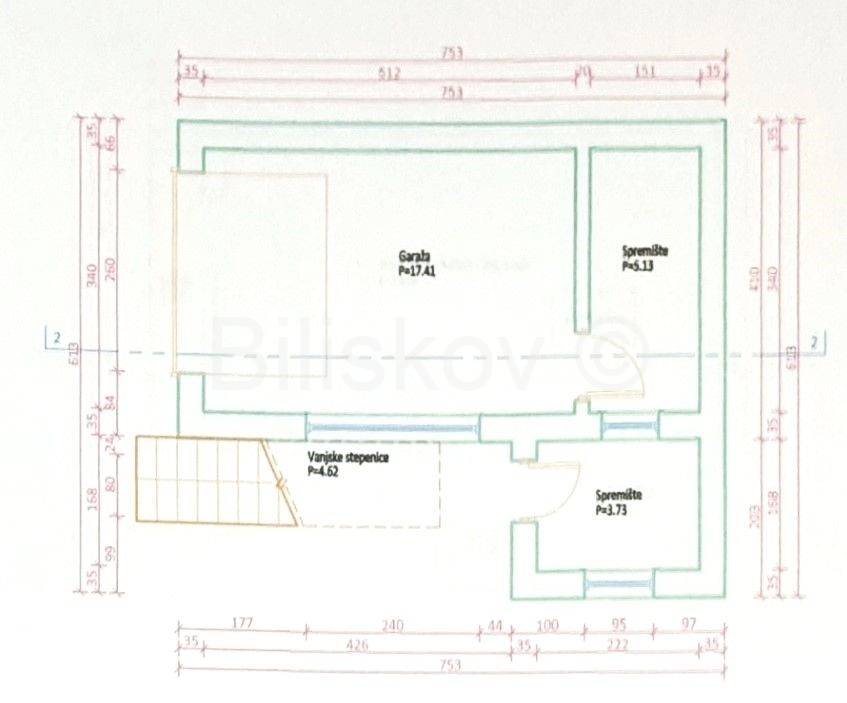 Kuća ima 6 vanjskih parkirnih mjesta i jedno PM u garaži.