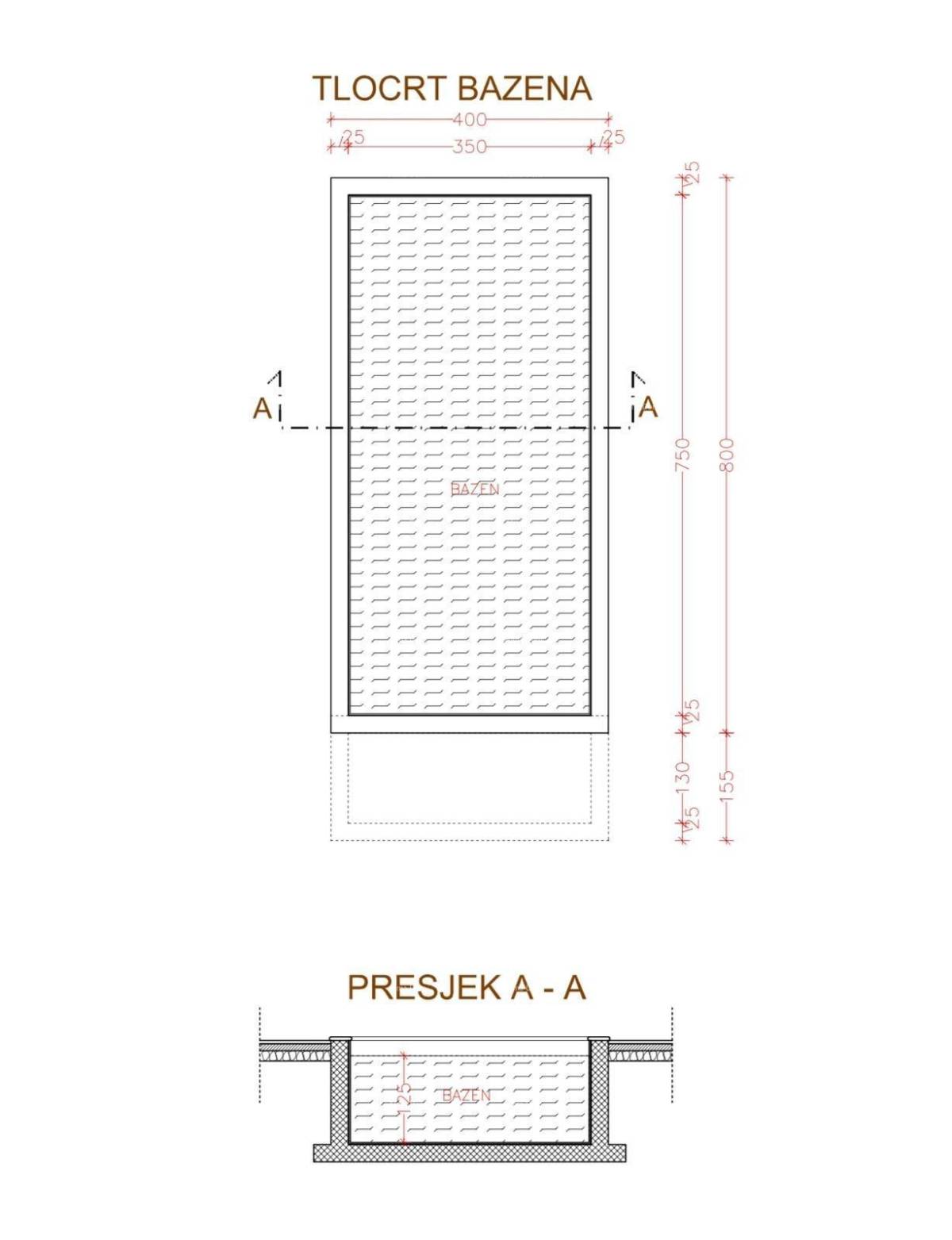 Uz kuću dolaze dva parkirna mjesta i bazen dimenzija 8 x 3,5 m.