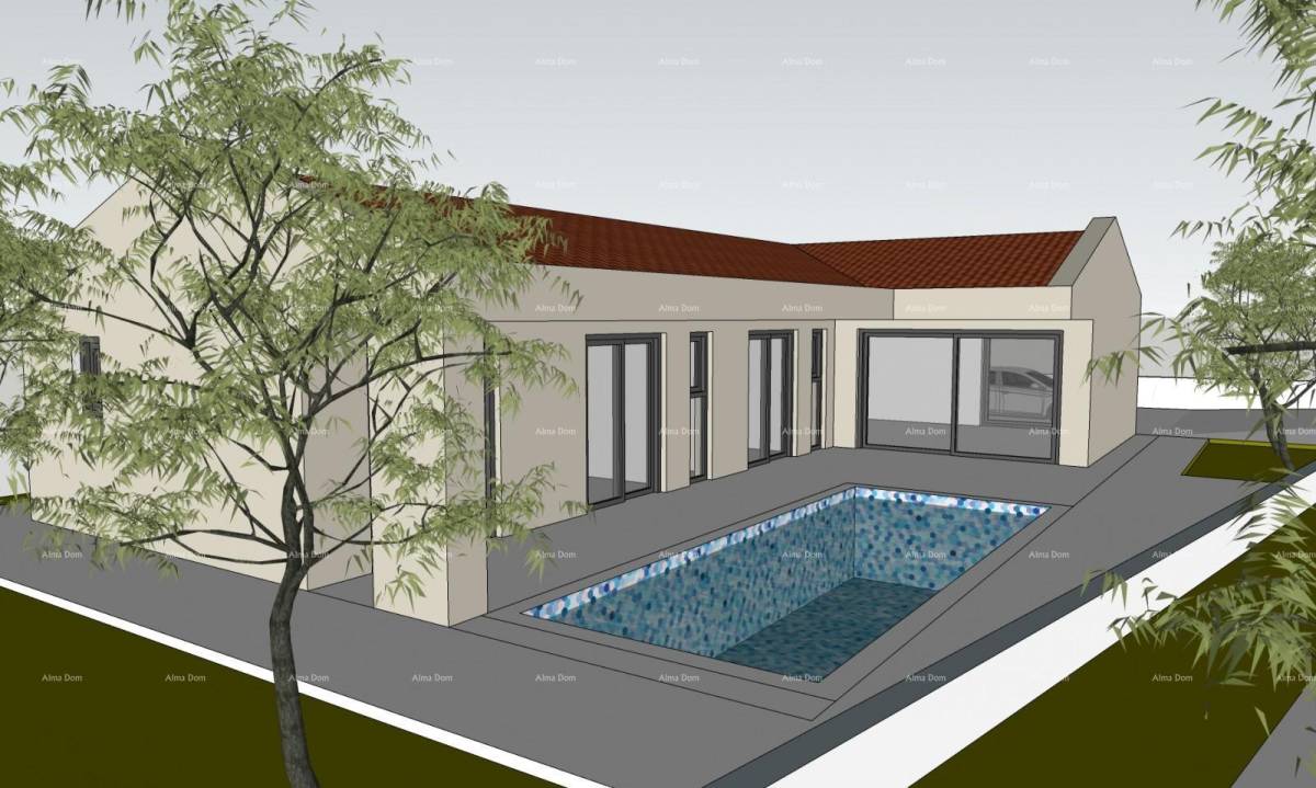 Projektom je predviđena jednoetažna kuća optimalno pozicionirana na parceli, s uređenim dvorištem i privatnošću. U sklopu dozvole predviđen je bazen dimenzija 8,5 × 3,5 m, s pripadajućom tehničkom dokumentacijom.