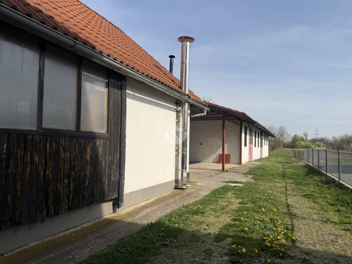 Na građevinskoj čestici se nalaze drvena kuća površine cca 60m2 s potkrovljem i radiona visokog stropa površine cca 140 m2. Čestica je ograđena i ima aktivne priključke struje, vode, plina. Postoji i sabrna jama. Nekretnina je održavana i u funkciji. Obje građevine su upisane u ZK no nemaju građevinsku i uporabnu dozvolu (postoji mogućnost legalizacije u skorije vrijeme).