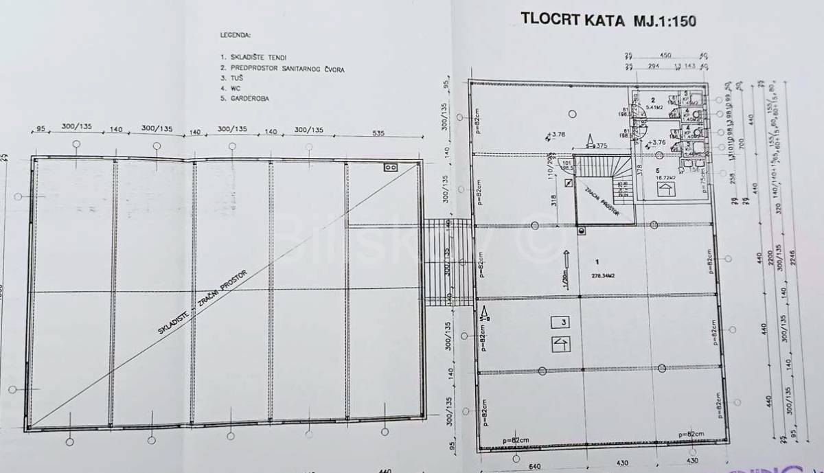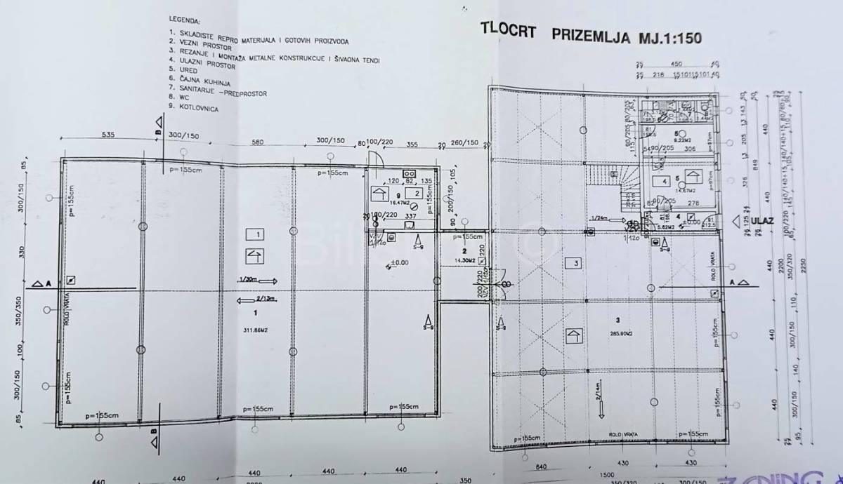 Hala je tlocrtne površine cca 711 m2, visine cca 8 m, u prednjem dijelu s galerijom što čini iskoristivu površinu od cca 1100 m2, proizvodno skladišne namjene, s uredom i sanitarnim prostorima m/ž, uz asfaltiranu pristupnu cestu i vlastitim kontroliranim pristupnim putem za dostavne kamione i šlepere.