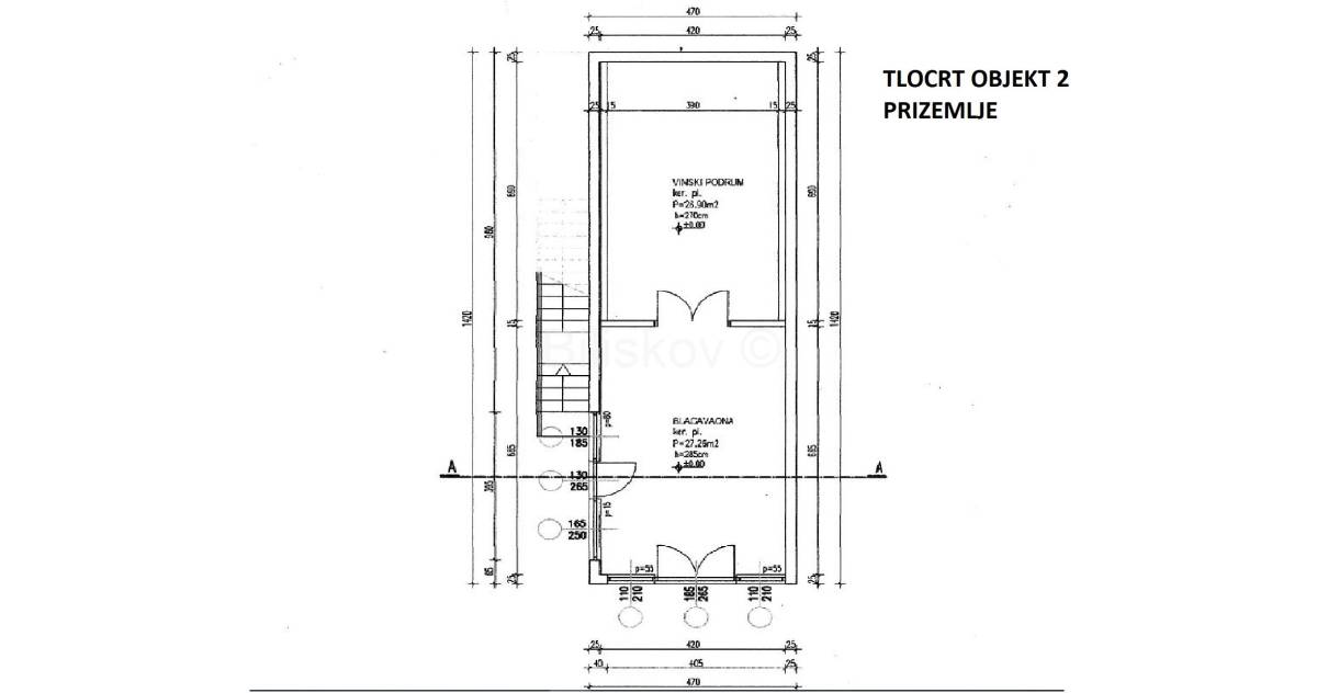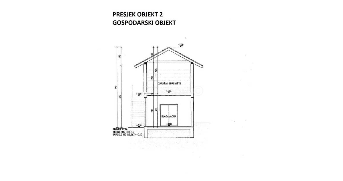 Građevni objekt 2 je gospodarski objekt ukupne bruto površine 73,44 m2, a sastoji se od prizemlja i kata. Prizemlje se sastoji od vinskog podruma i blagovaonice, a na katu se nalazi garaža i spremište.