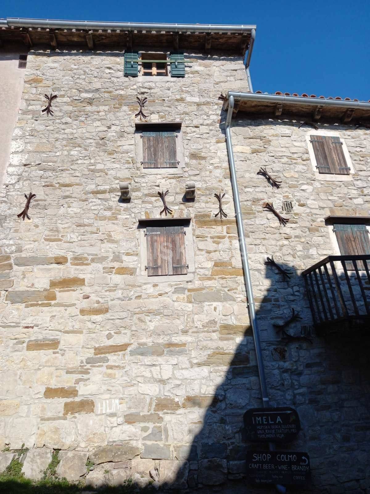 Jedinstvena višestoljetna,troetažna, kamena kuća površine 294 m2 smještena je u samom srcu Huma, najmanjeg grada na svijetu, s prekrasnim pogledom na glavni trg i povijesnu jezgru grada.
