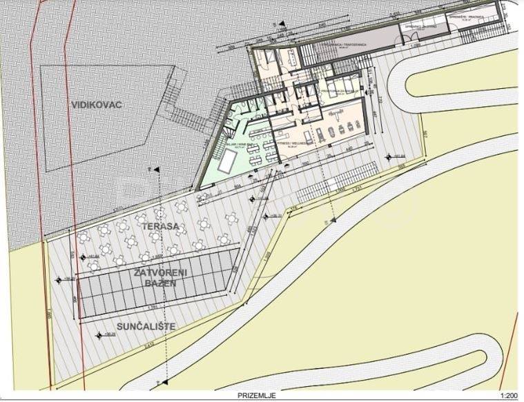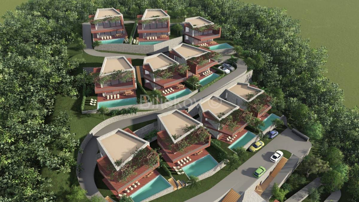 Građevinsko zemljište površine 8000 m2 sa gotovim idejnim projektom smjestilo se na kosom terenu blizu plaže Javorišće.