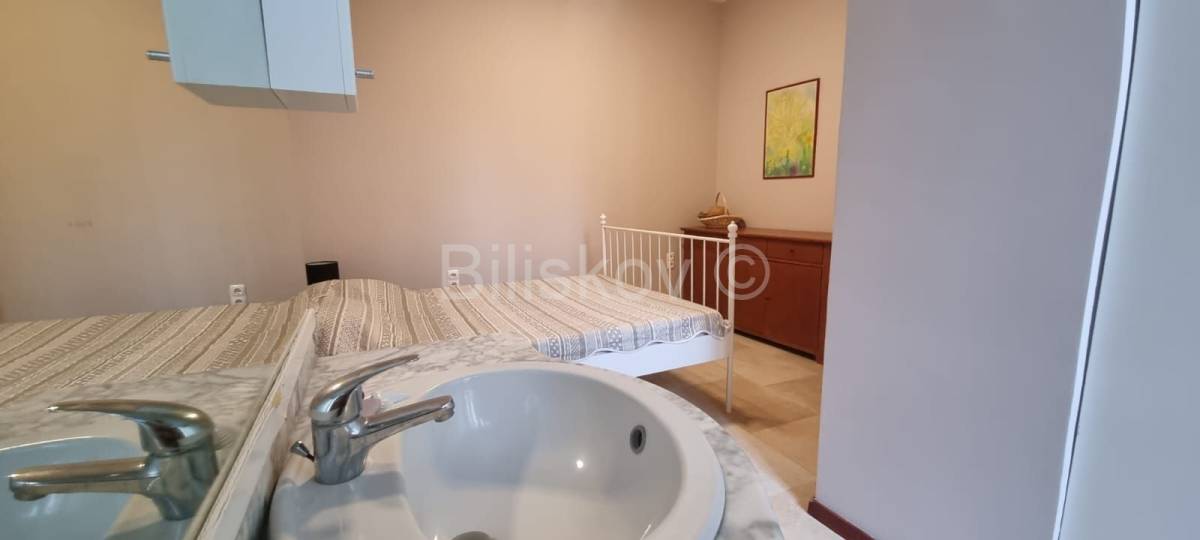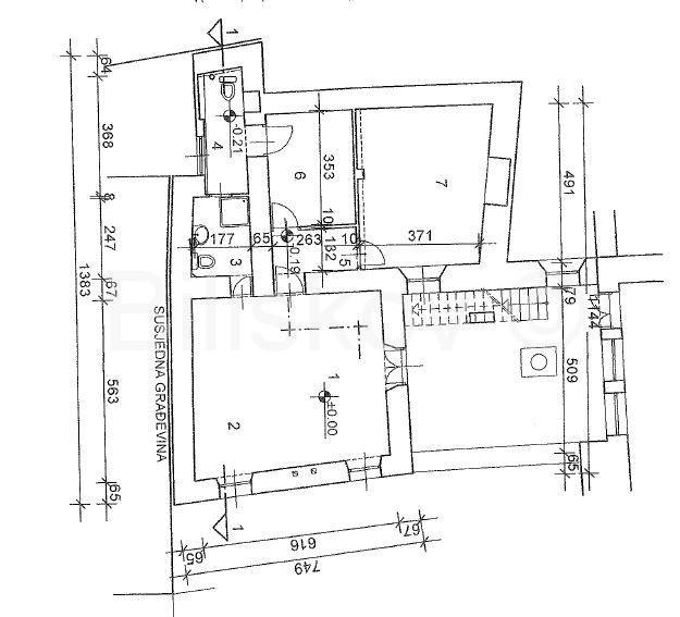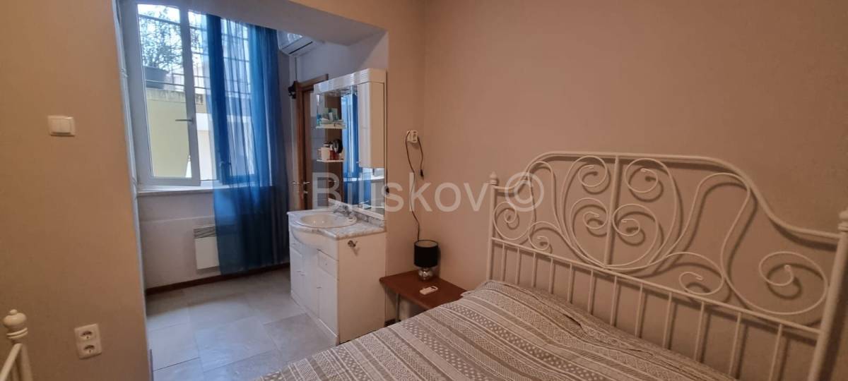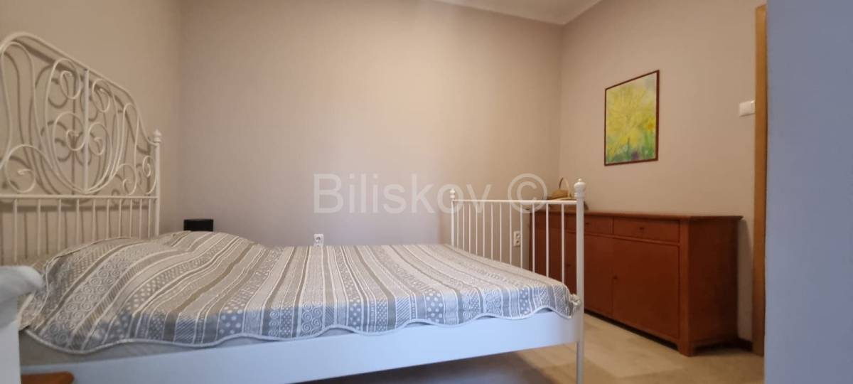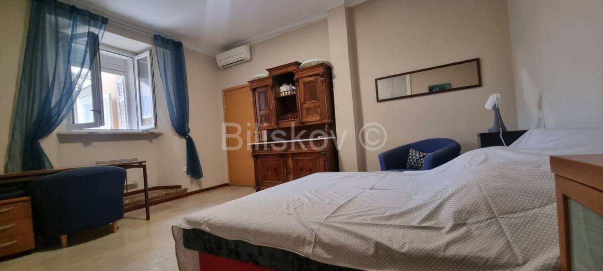 Prostran i namješten trosoban stan ukupne površine 75,66 m2 smjestio se na prvom katu starije kamene zgrade sagrađene oko 1800. godine.
