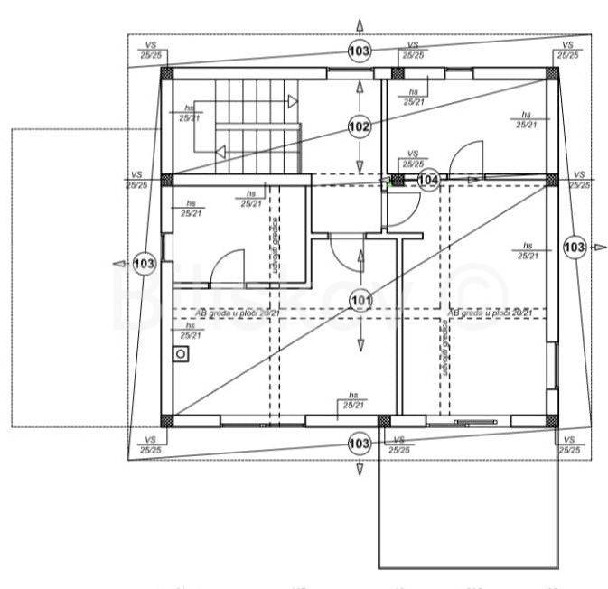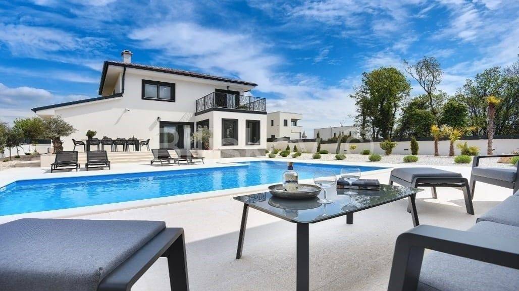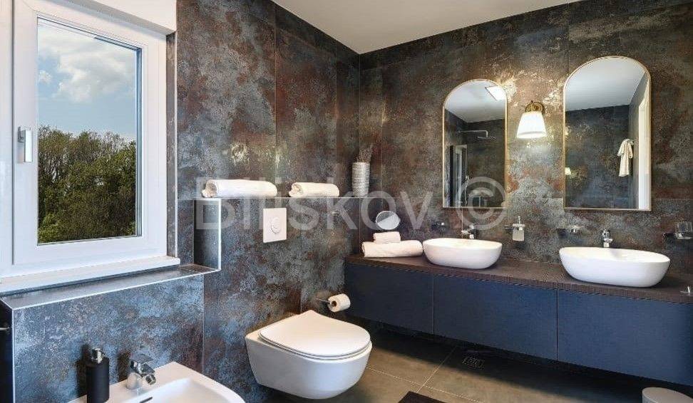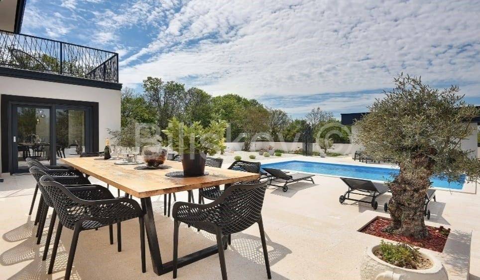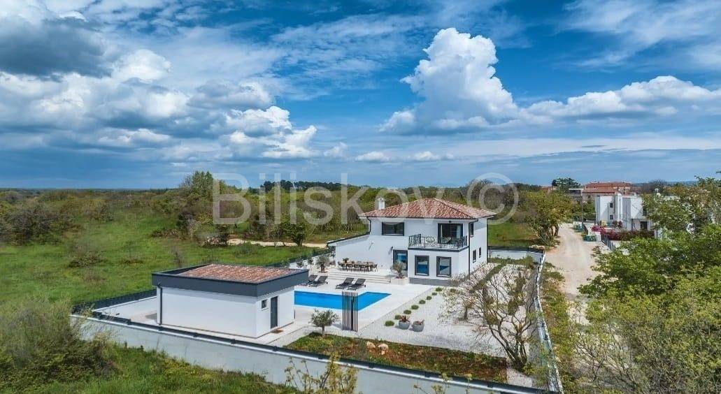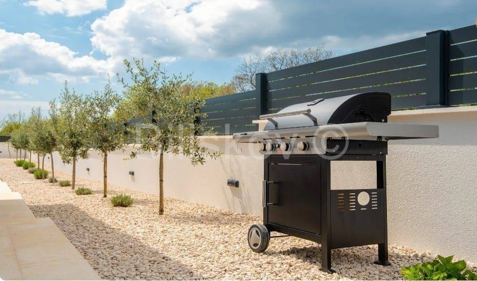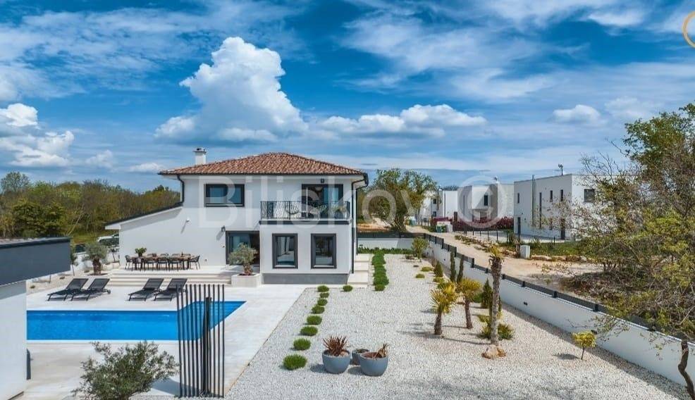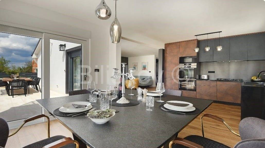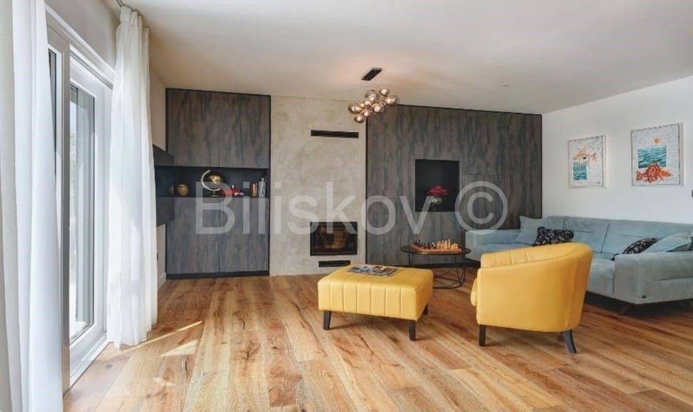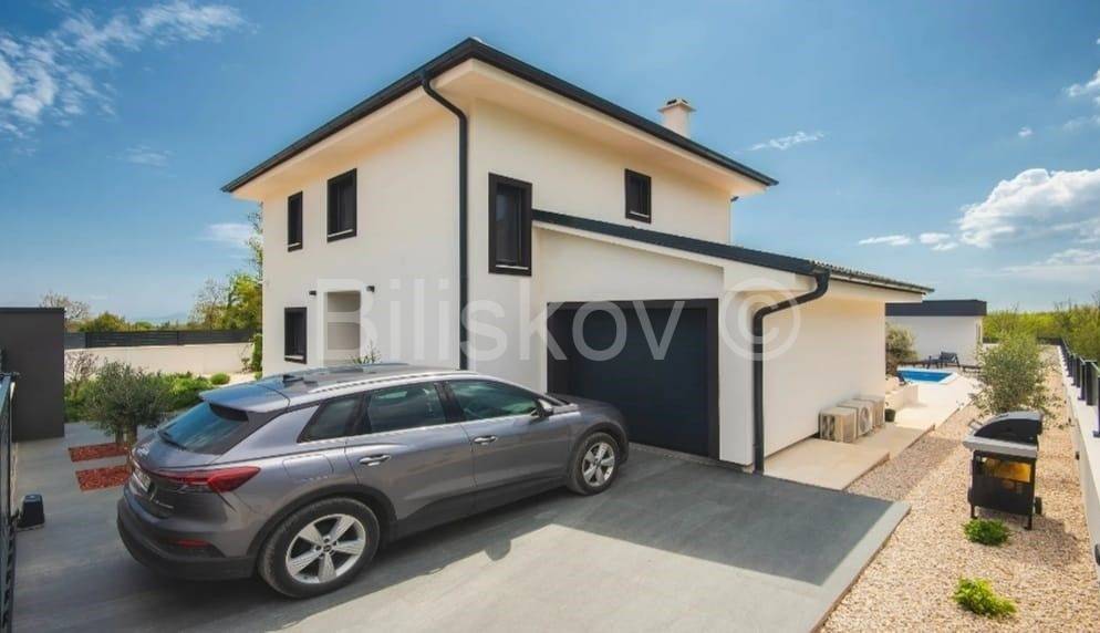 Moderna niskoenergetska kuća od 128 m2 raspoređena na dvije etaže, izgrađena 2022 godine na zemljištu od 785 m2.