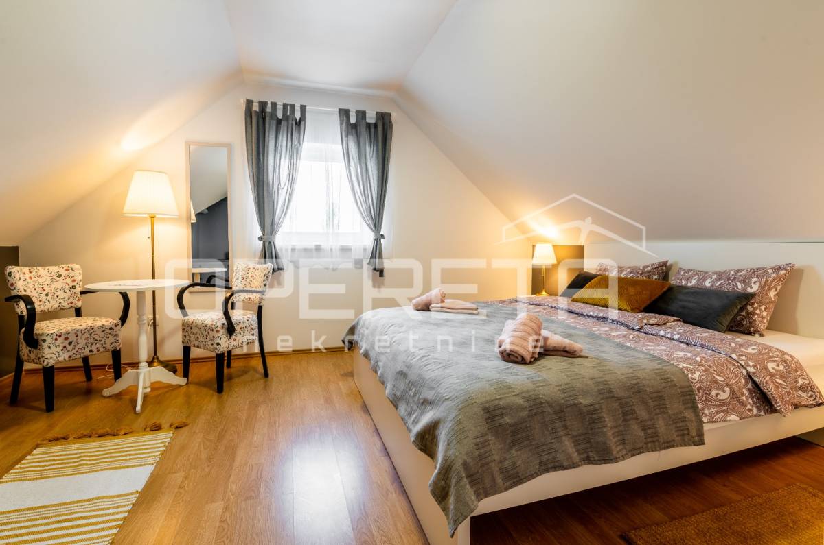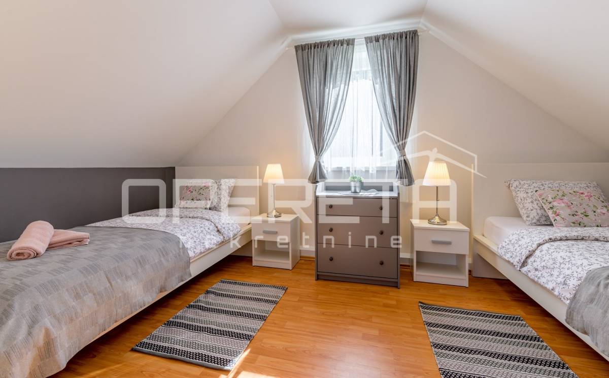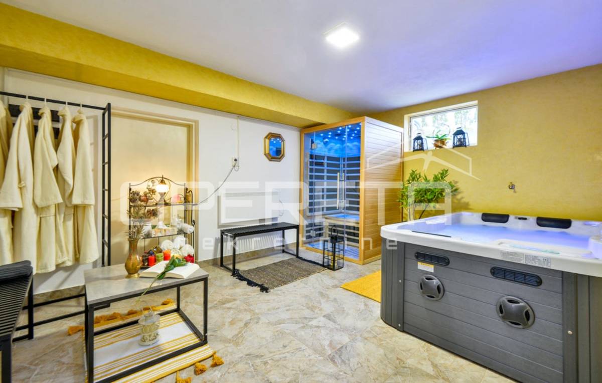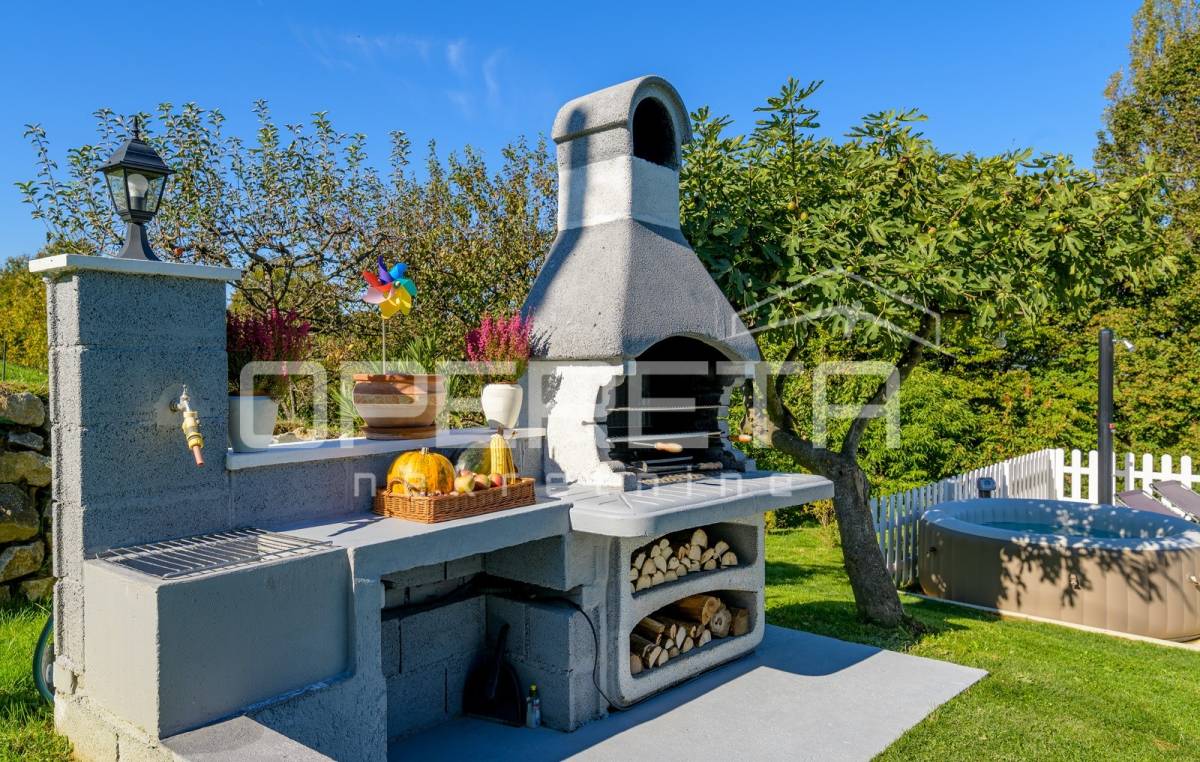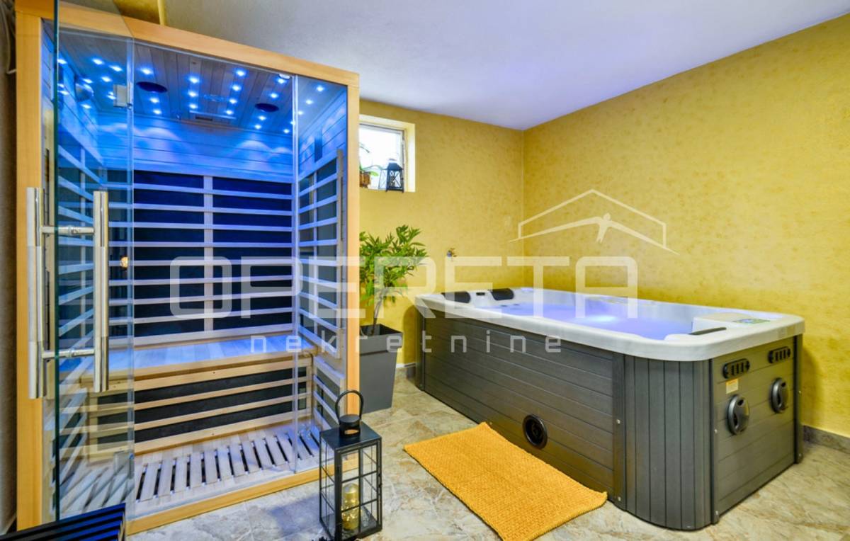 Potpuno opremljena za život ili iznajmljivanje što uključuje bazen, saunu i jaccuzi i dodatni prostor za razne aktivnosti na otvorenom, od igranja s djecom do druženja s prijateljima i obitelji. Uz kuću se nalazi i dodatna kućica za alat od površine 12m2.