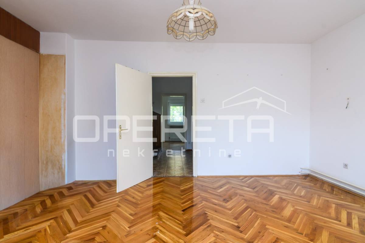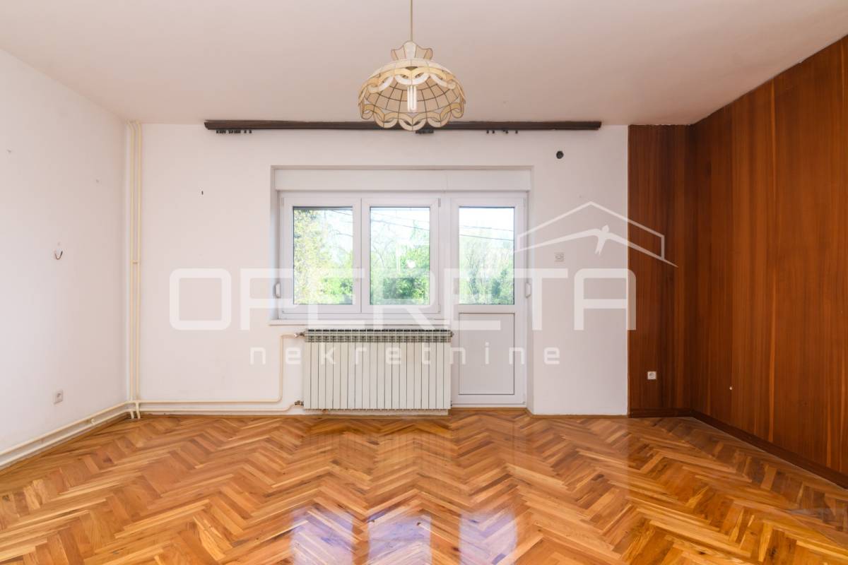 Prizemlje - ulazni hodnik, hodnik, kupaonica sa WC-om, prostrana spavaća soba, blagovaonica sa izlazom u dvorište koja je u komunikaciji s kuhinjom i prostrana ostava sa ulazom u podrum.