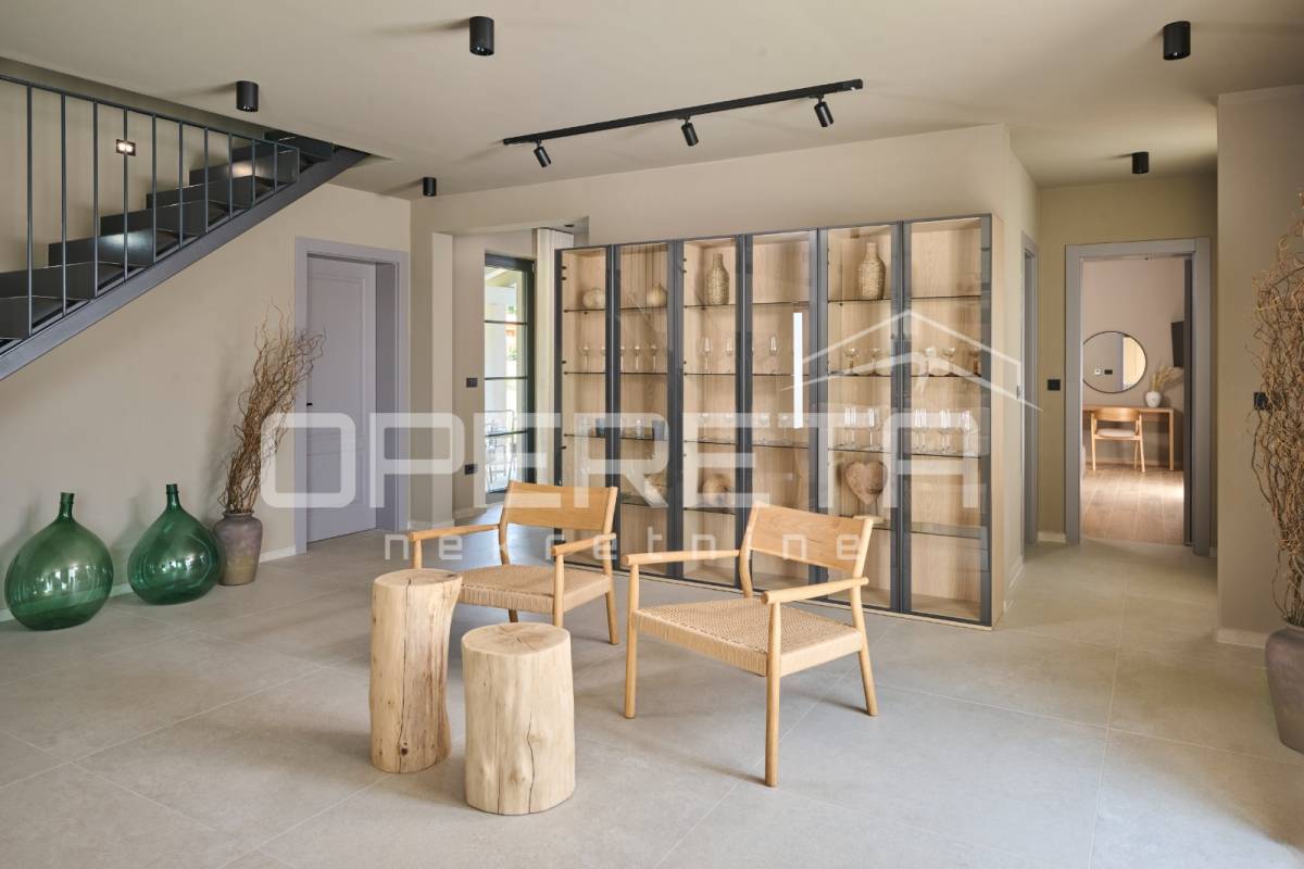 Cijela vila je  kompletno opremljena talijanskim namještajem, što dodatno naglašava njezinu eleganciju i kvalitetu. Parcela je brižno uređena mediteranskim biljem, s kompletnim sustavom navodnjavanja, a osiguran je i parking za 6 automobila.