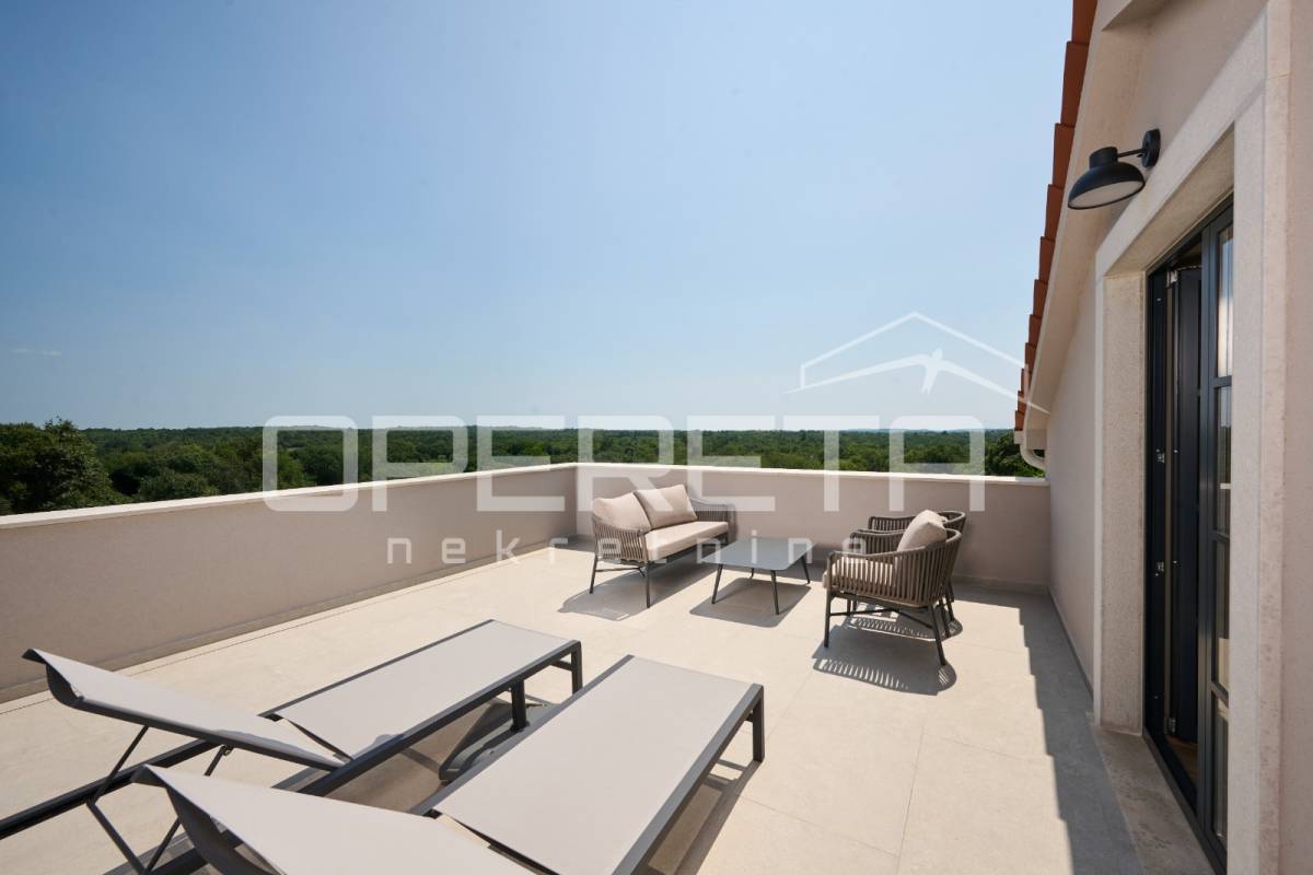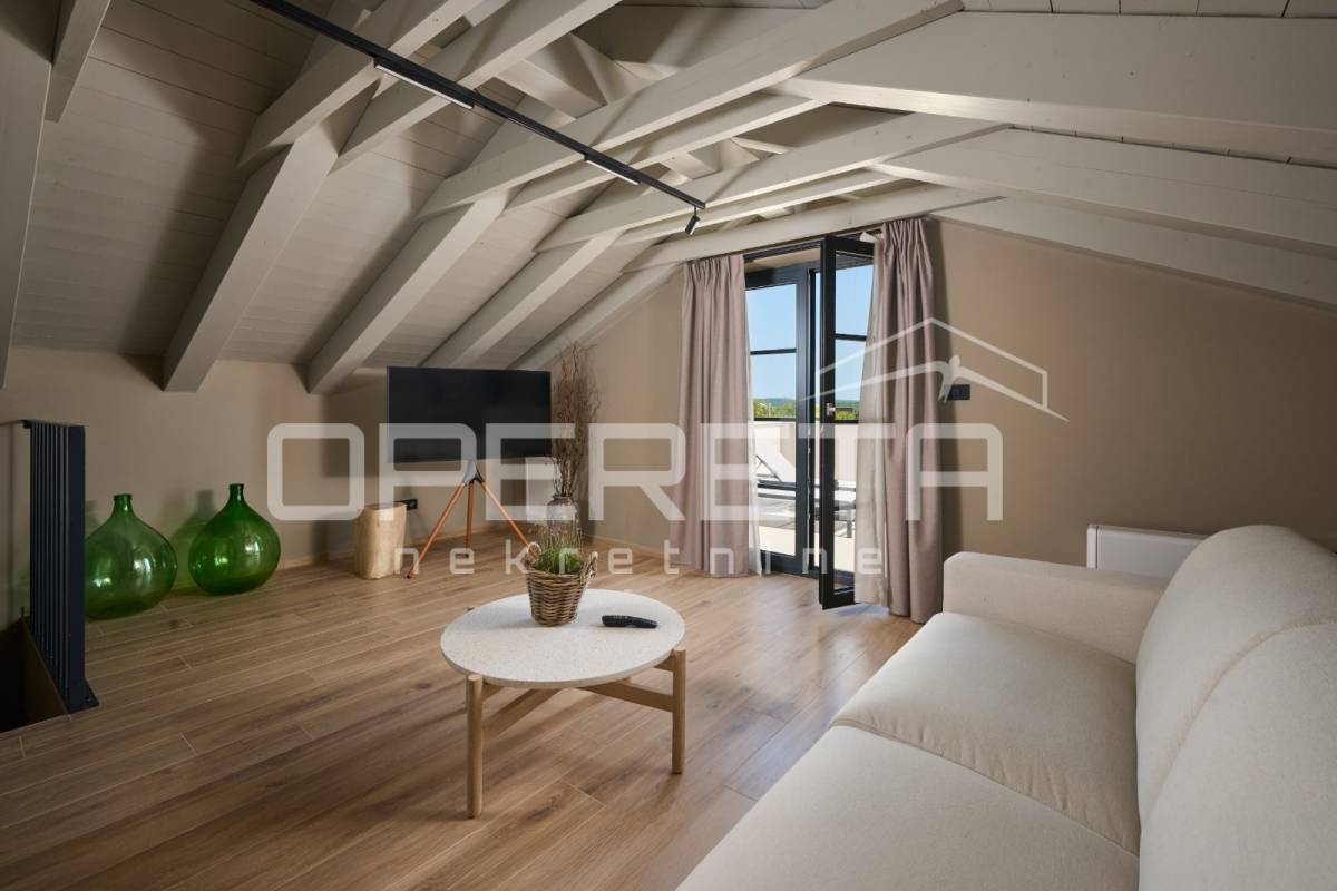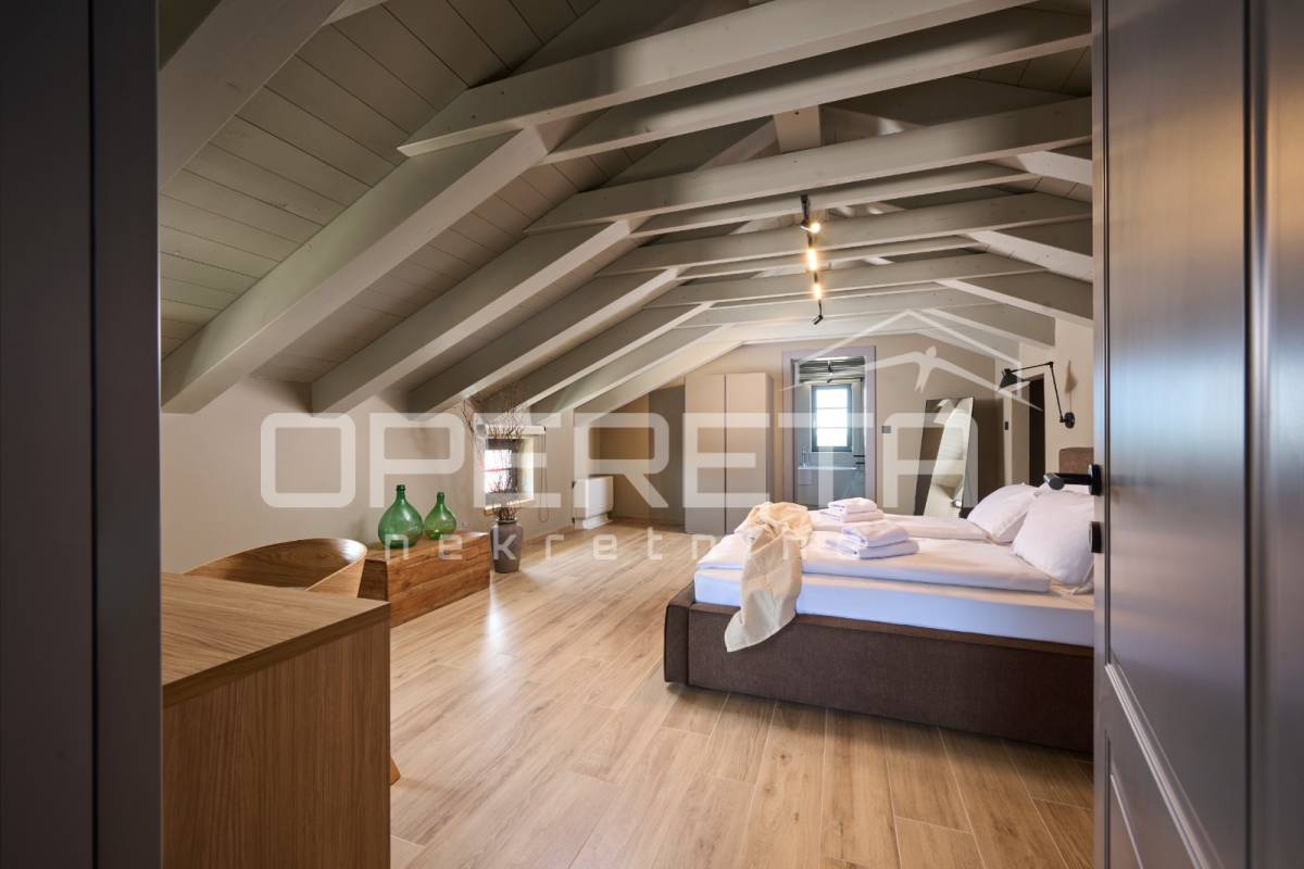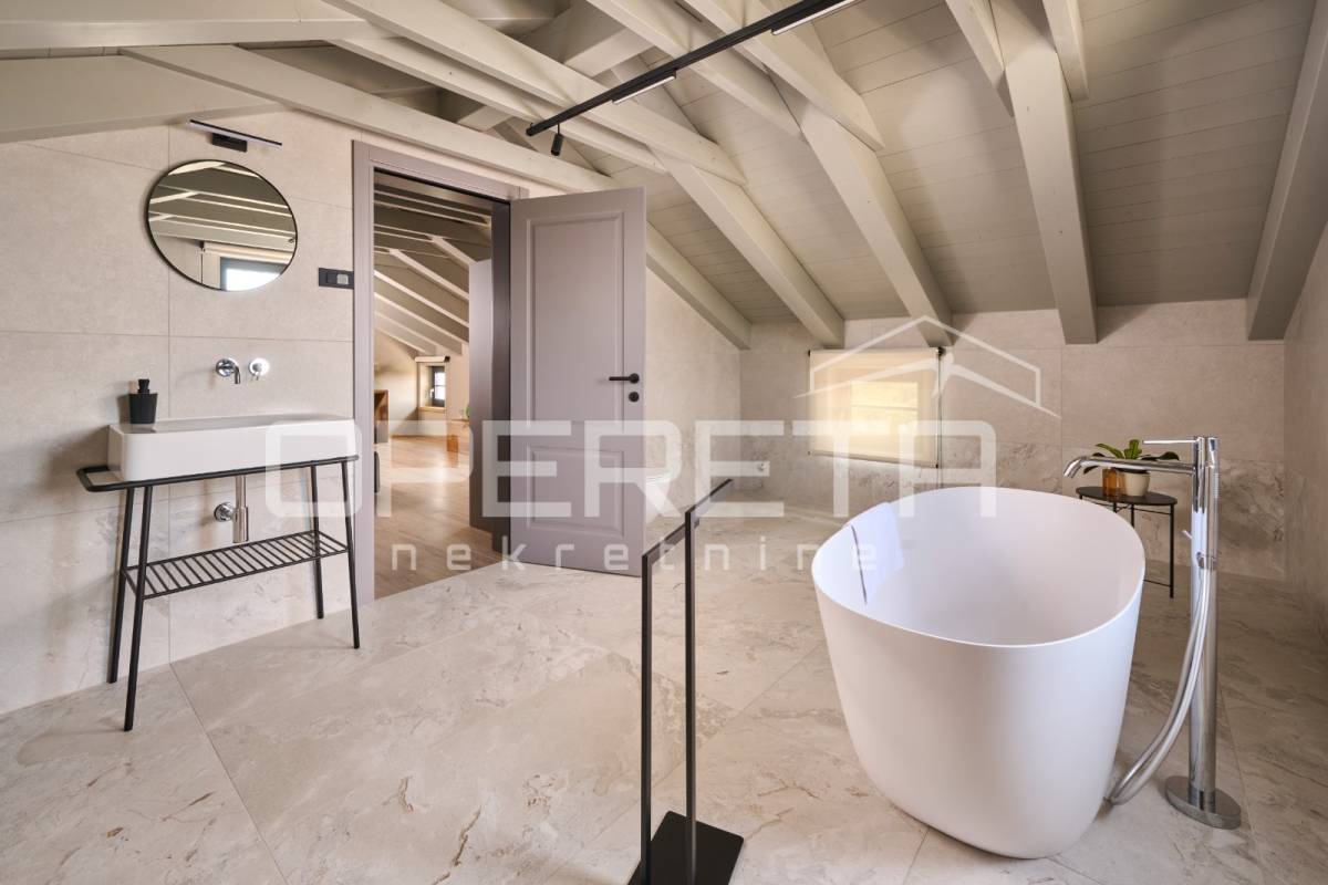 Prava kruna vile je potkrovlje od 96 m², gdje se nalazi još jedna spavaća soba s kupaonicom, udoban TV room te izlaz na spektakularnu krovnu terasu s otvorenim, panoramskim pogledom na more.
