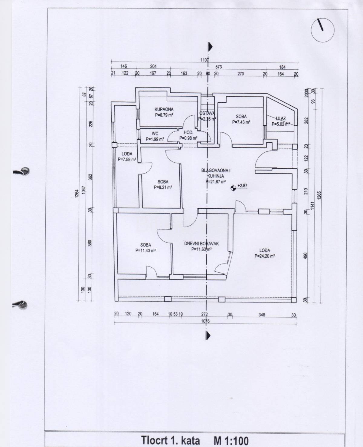 Na 1. katu se nalazi četverosobni stan, kuhinja sa blagovaonicom, kupaona i posebno wc te terasa.