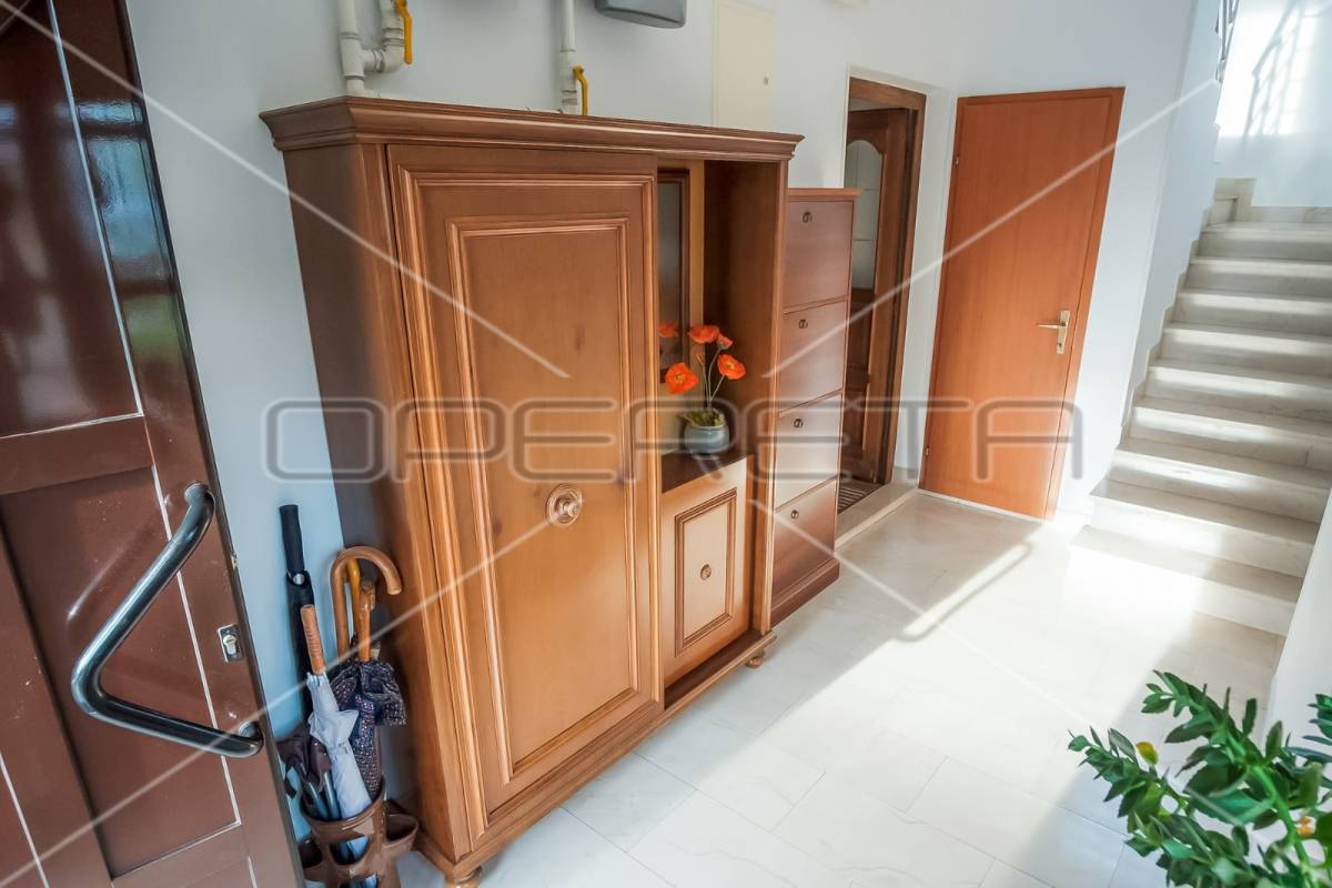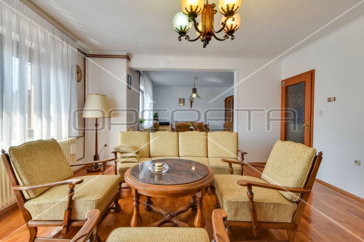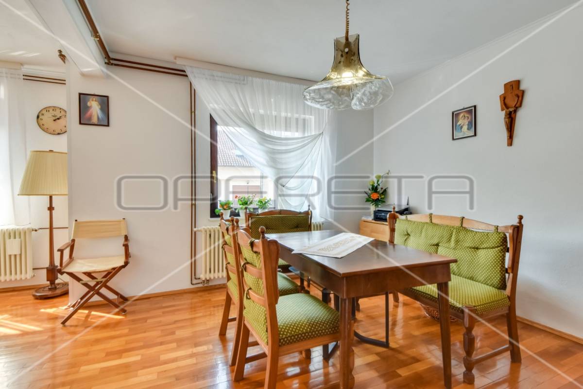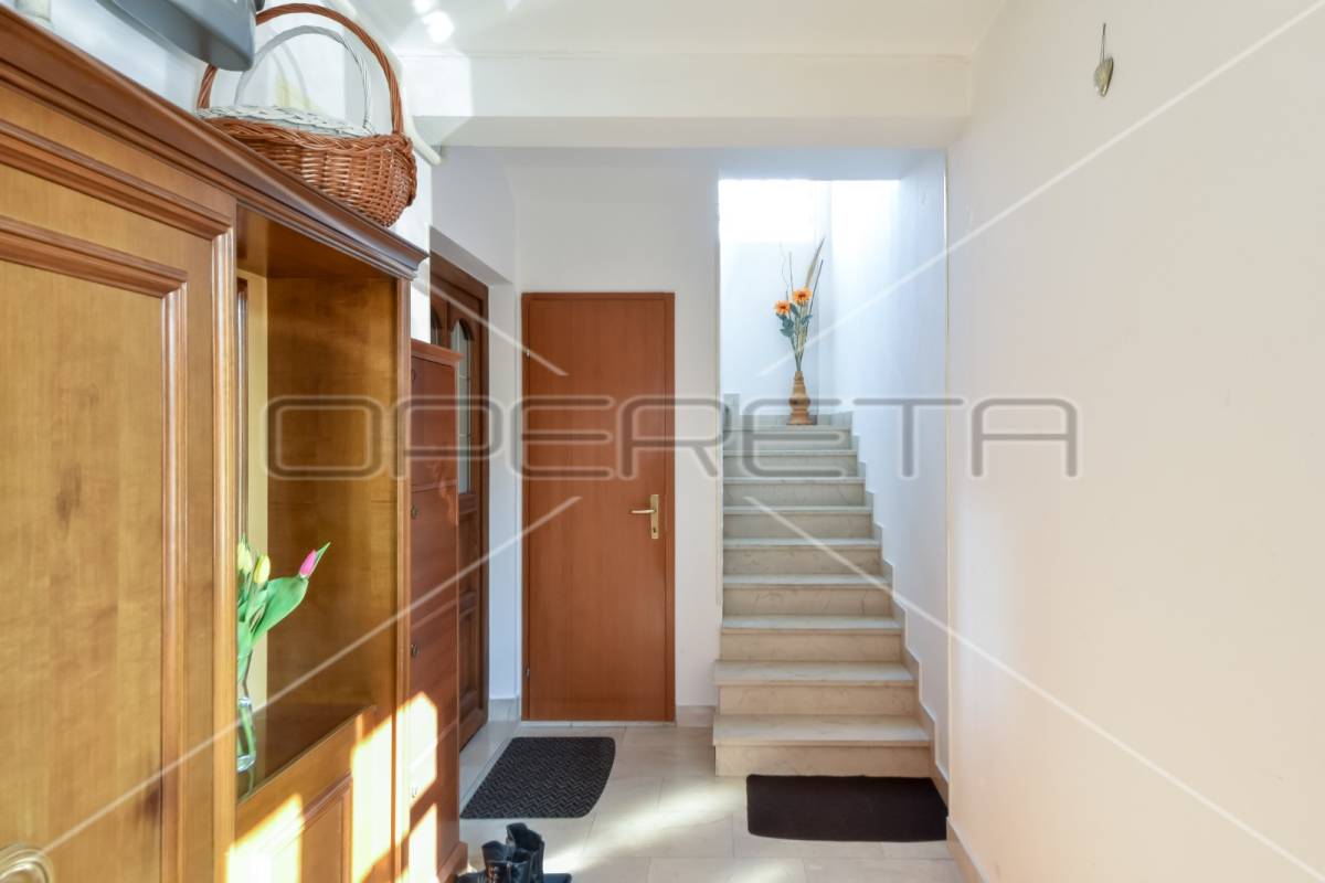 PRODAJA, KUĆA, SESVETSKI KRALJEVEC, Ulica Zeleni vijenac, kompletno uređena i namještena kuća na parceli od 244 m2, trenutno koncipirana kao dva odvojena stana. Plinsko etažno grijanje, vlastita brojila, odlična pozicija, mir, blizina javnog prijevoza, škole... Idealno za veću obitelj ili dvije obitelji, isto tako za nekoga tko bi htio imati ured, radnju ili neki tihi obrt u sklopu kuće. Dokumentacija uredna.
