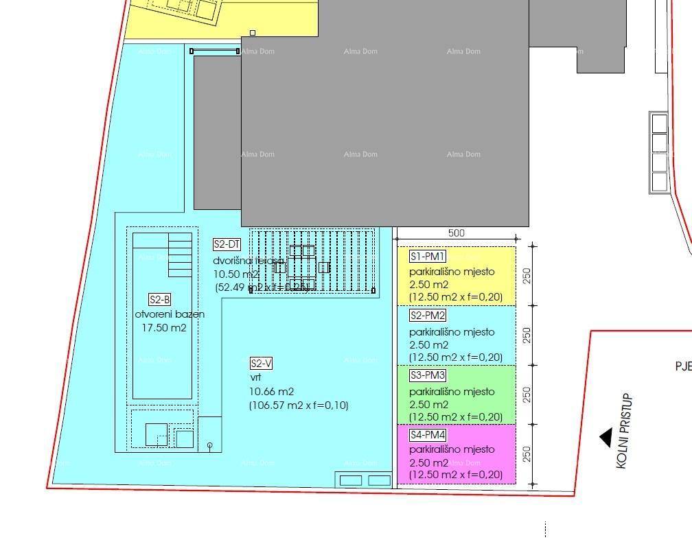 Stan ima bazen od 17.5 m2, parkirno mjesto i spremište od 7.67 m2.
