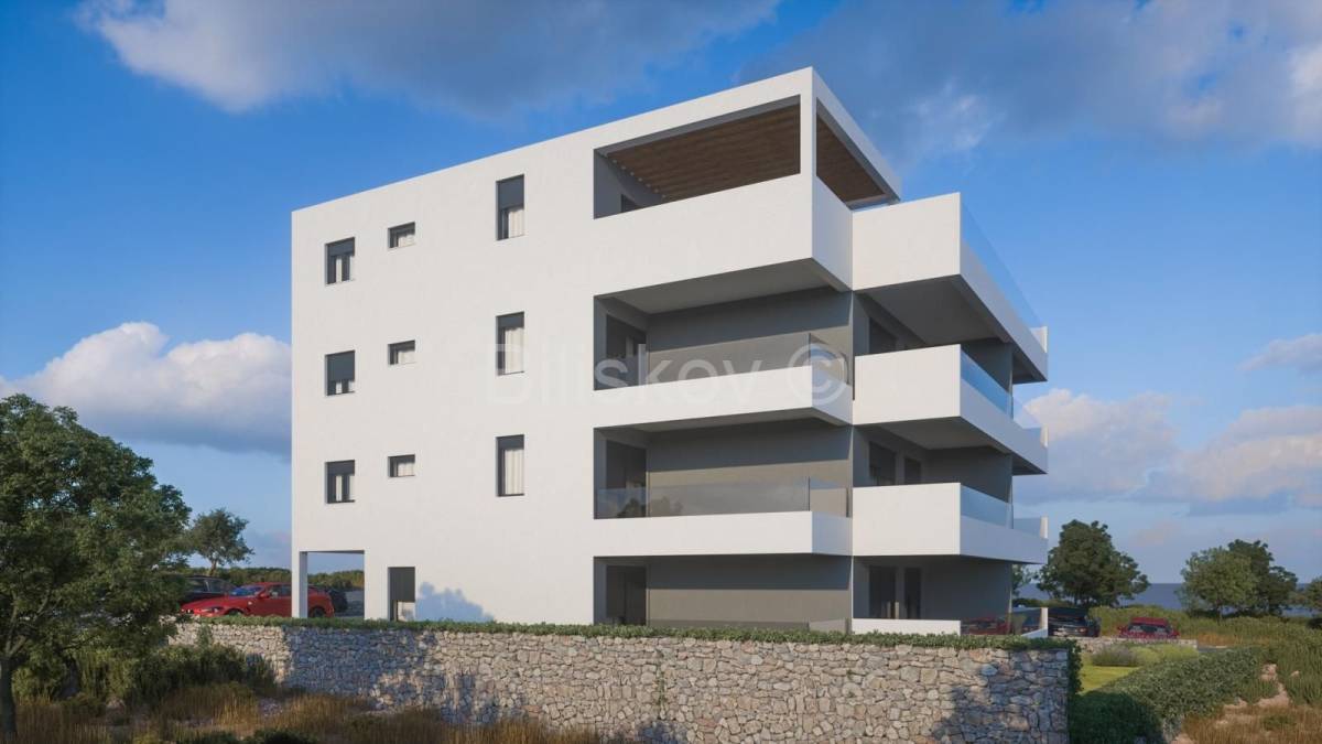 Nalazi se na prvom katu zgrade te se sastoji od dvije spavaće sobe, kupaonice, dnevnog boravka povezanog s kuhinjom i blagovaonicom te prostranog balkona idealnog za opuštanje. Cijelom površinom stana provedeno je podno grijanje, što osigurava visoku razinu komfora tijekom cijele godine. Stanu pripada i vlastito parkirno mjesto.