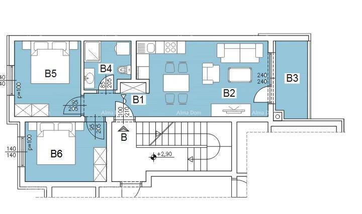 Stambeni prostor od 54,95 m² sastoji se od dnevnog boravka s kuhinjom i blagovaonicom, dvije spavaće sobe, kupaonice, hodnika i lođe koja pruža ugodan prostor za opuštanje.