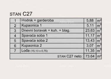 Stan C27, površine 73.64 m2, nalazi se u zgradi C.