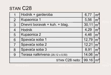 Stan C28, površine 99.16 m2, nalazi se u zgradi C.