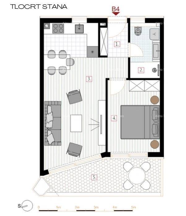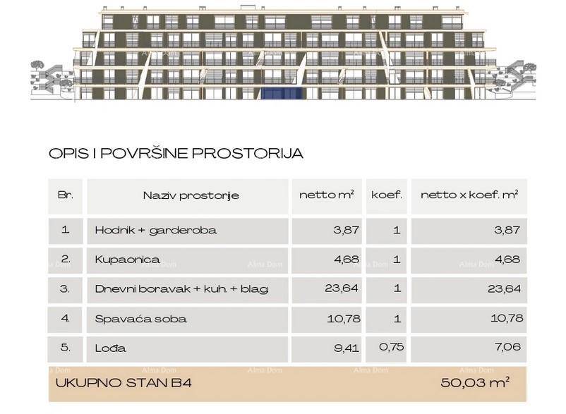 Stan B4, površine 51,59m2(neto korisne površine 50.03m2), nalazi se u zgradi B.