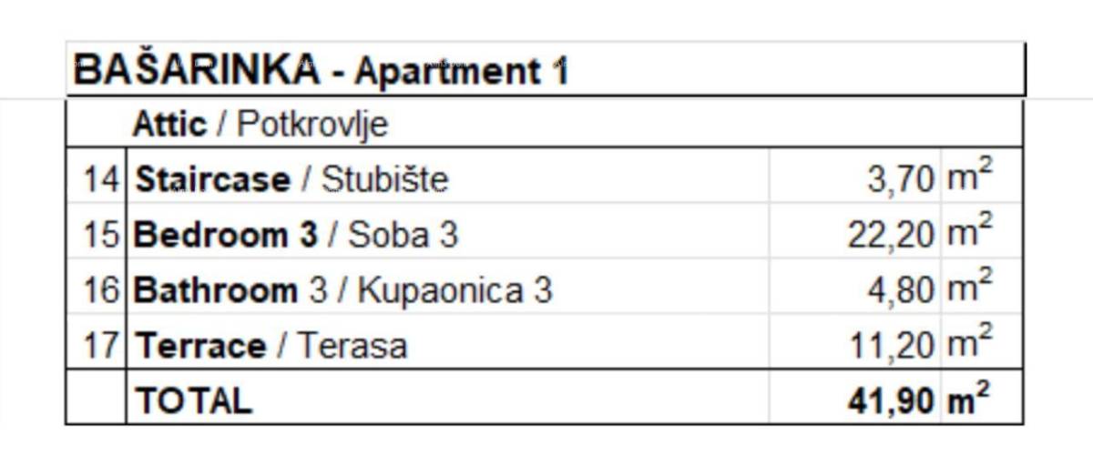 Treća etaža nudi pažljivo osmišljen raspored sa stubištem koje vodi do spavaće sobe i kupaonice. Posebnost ovog kata je prostrana terasa, idealna za uživanje u panoramskim pogledima, jutarnjoj kavi ili mirnim večerima pod zvijezdama.