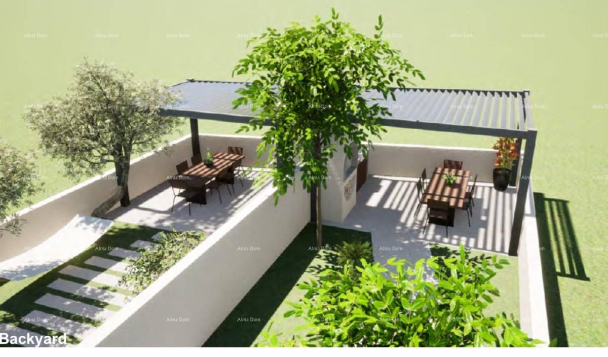 Prizemlje uključuje ulaz koji vodi do dobro dizajniranog rasporeda. Stubište povezuje dva kata, poboljšavajući protok prostora. Na ovom katu nalaze se dvije sobe za skladištenje, koje pružaju dovoljno prostora za organizaciju i pohranu. Kuhinja je dizajnirana za praktičnost i stil, a besprijekorno prelazi u blagovaonicu i dnevni boravak, idealno za svakodnevni život. u prizemlju se nalazi i kupaona, terasa i pergola, savršene za uživanje u obrocima na otvorenom i opuštanje u privatnom okruženju.