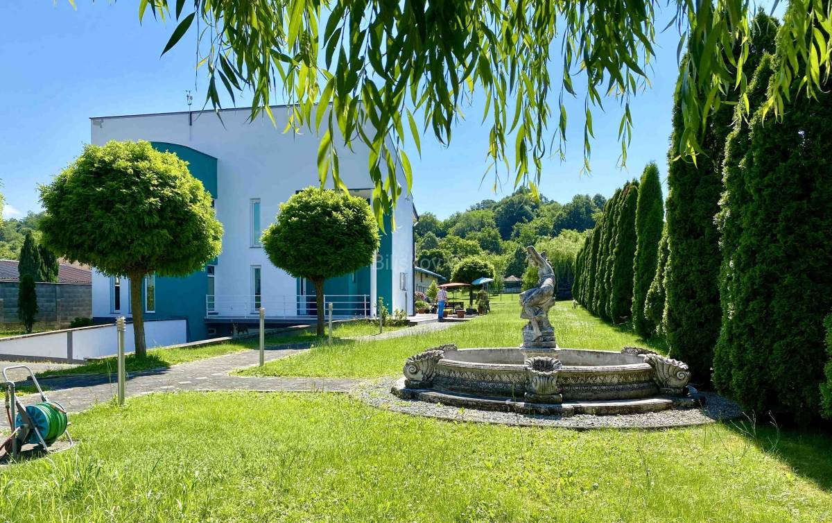Na prostranom imanju površine 4.089 m² nalazi se luksuzna vila s osam soba, dvorišni gospodarski objekt i pomoćna garaža.