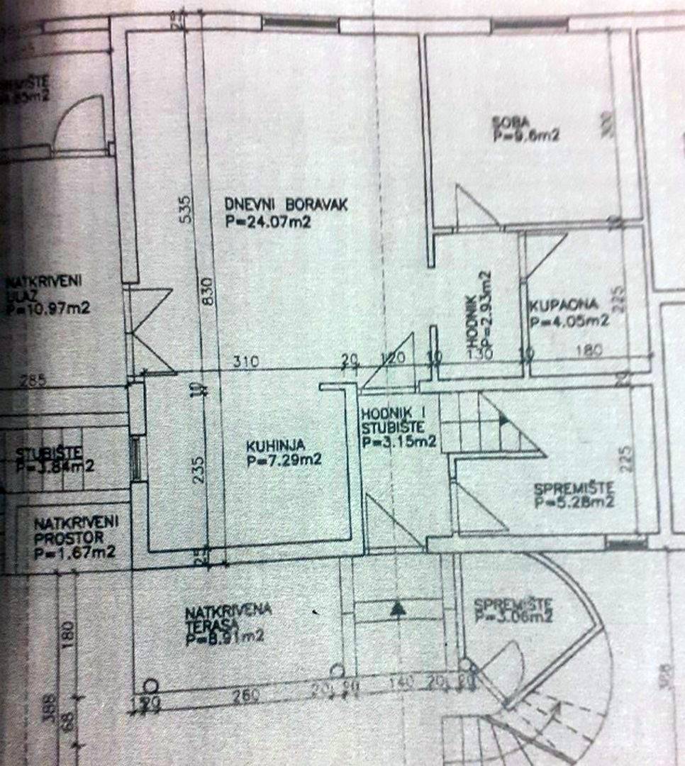 U prizemlju, površine 66,30m2, je veranda – natkrivena terasa, terasa, dnevni boravak, kuhinja, dvije spavaće sobe, dvije kupaonice, spremište i hodnik. Na verandi je smještena ljetna kuhinja. Vanjskim kamenim stubama se ide u podrum površine 63, 60m2 gdje je hodnik, kuhinja, dnevni boravak, spavaća soba, kupaonica i spremište.
