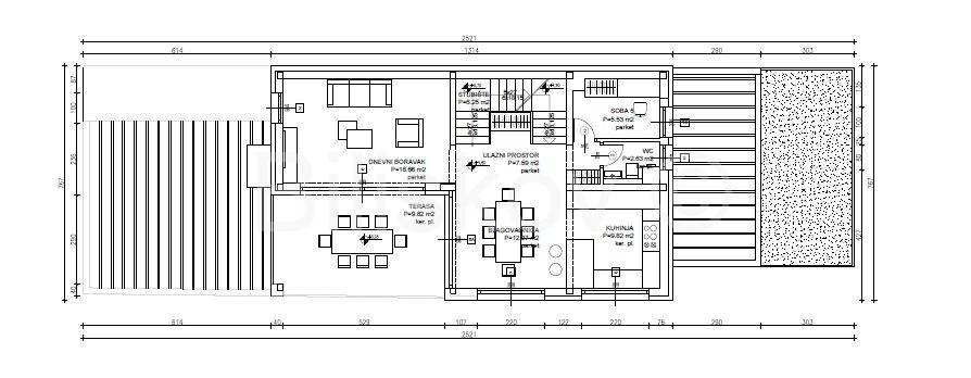 Prostrani dvoetažni peterosobni stan površine 180 m2 na drugom katu i potkrovlju u novogradnji čiji se završetak gradnje očekuje do kraja 2024 godine.