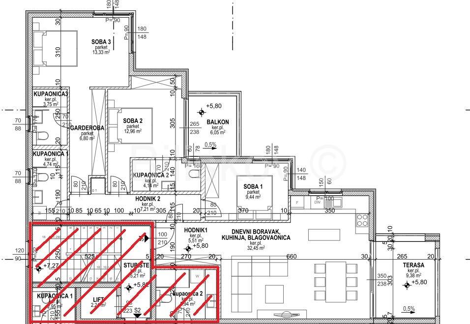 Luksuzni četverosobni stan površine 116,31m2 na 2. katu zgrade sagrađene 2024. godine.