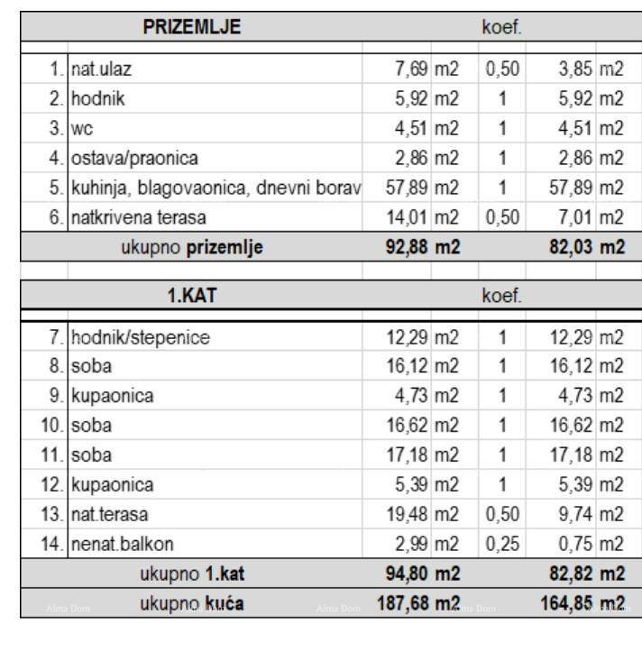 Unutarnje stepenice vode na kat vile gdje su smještene tri prostrane spavaće sobe (sve imaju izlaz na terasu), hodnik, 2 kupaone i veliku natkrivenu terasu.