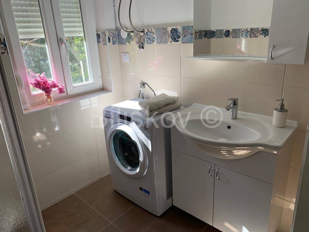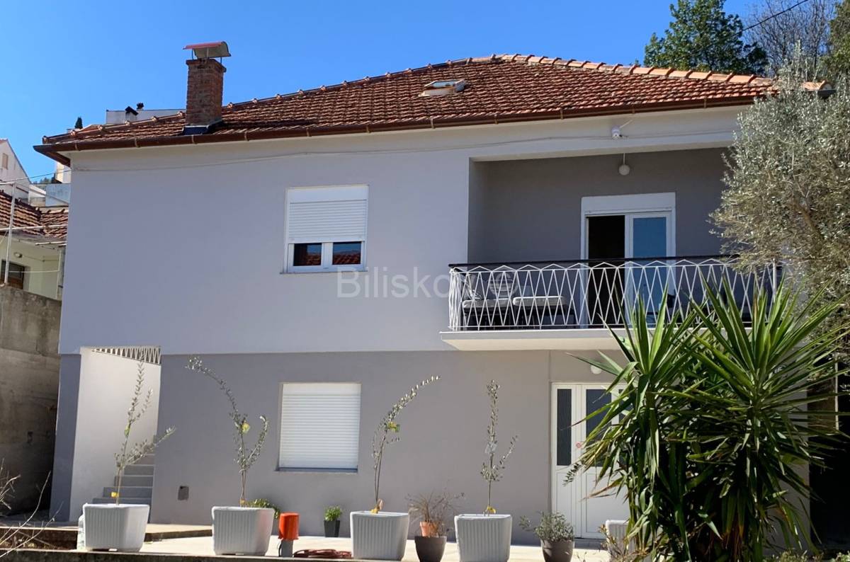 Vrlo lijepa samostojeća četverosobna kuća na dvije etaže, s uređenom okućnicom i dodatnom parcelom namijenjenom za parking, ukupne površine 380 m², izgrađena je 1967. godine i smještena svega 50 metara od mora, dok se dodatna parcela nalazi na samo 20 metara udaljenosti od obale. Kuća je adaptirana 2024. godine.
