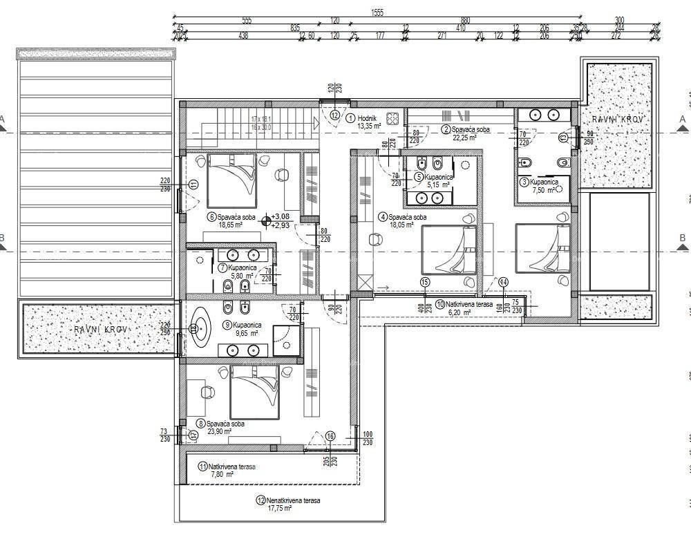 Ova moderna, luksuzna obiteljska kuća, površine 351,20 m2 (netto 303,34 m2), nalazi se na lijepoj lokaciji u neposrednoj blizini mjesta.