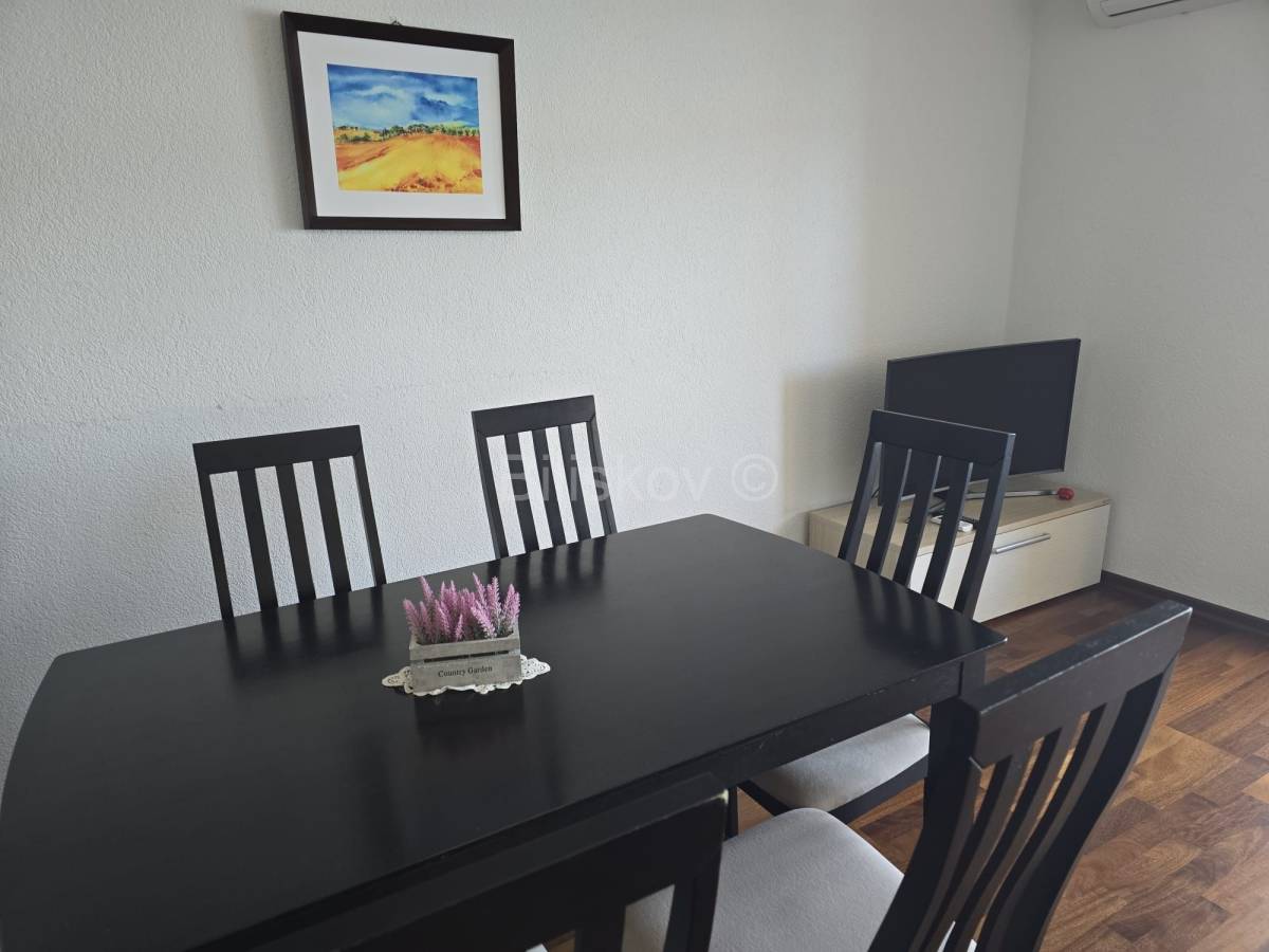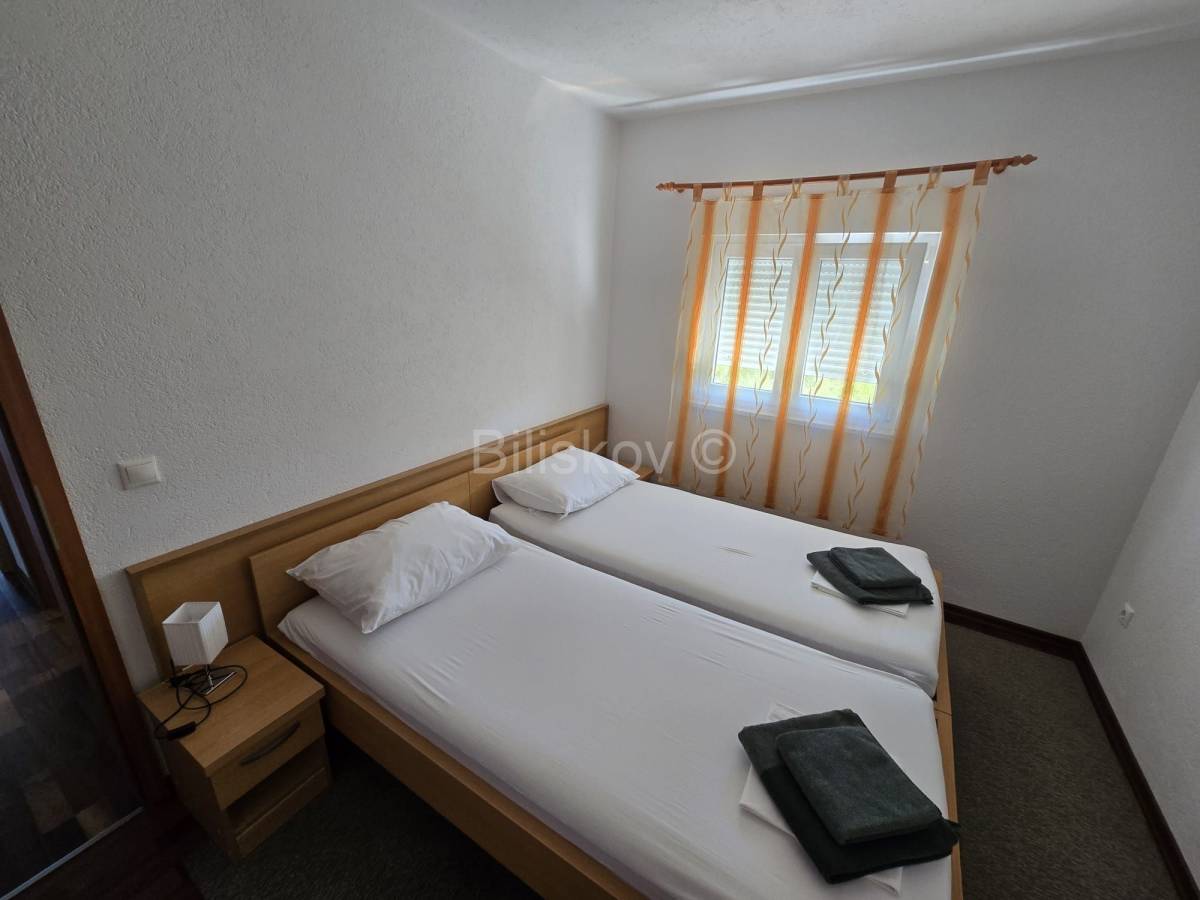 Stan je kompletno namješten, klimatiziran, a sastoji se od dnevnog boravka sa staklenom stijenom i pogledom, blagovaonice, kuhinje, spavaće sobe, kupaonice i balkona-terase. Stanu pripada parkirno mjesto u vlastitom dvorištu i ostava.