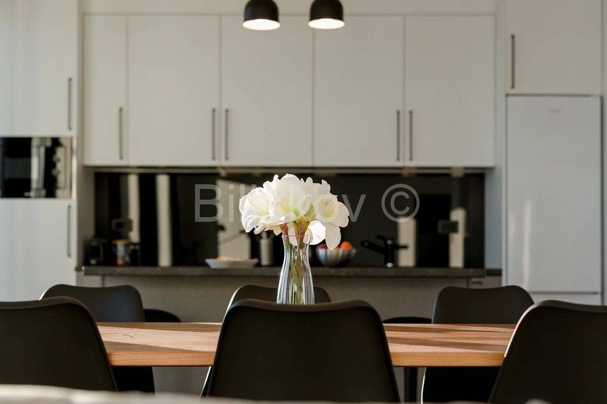 U prizemlju se nalaze kuhinja, blagovaonica, dnevni boravak, gostinjski wc, vinski bar te vanjski grijani bazen.