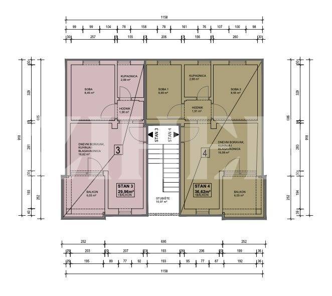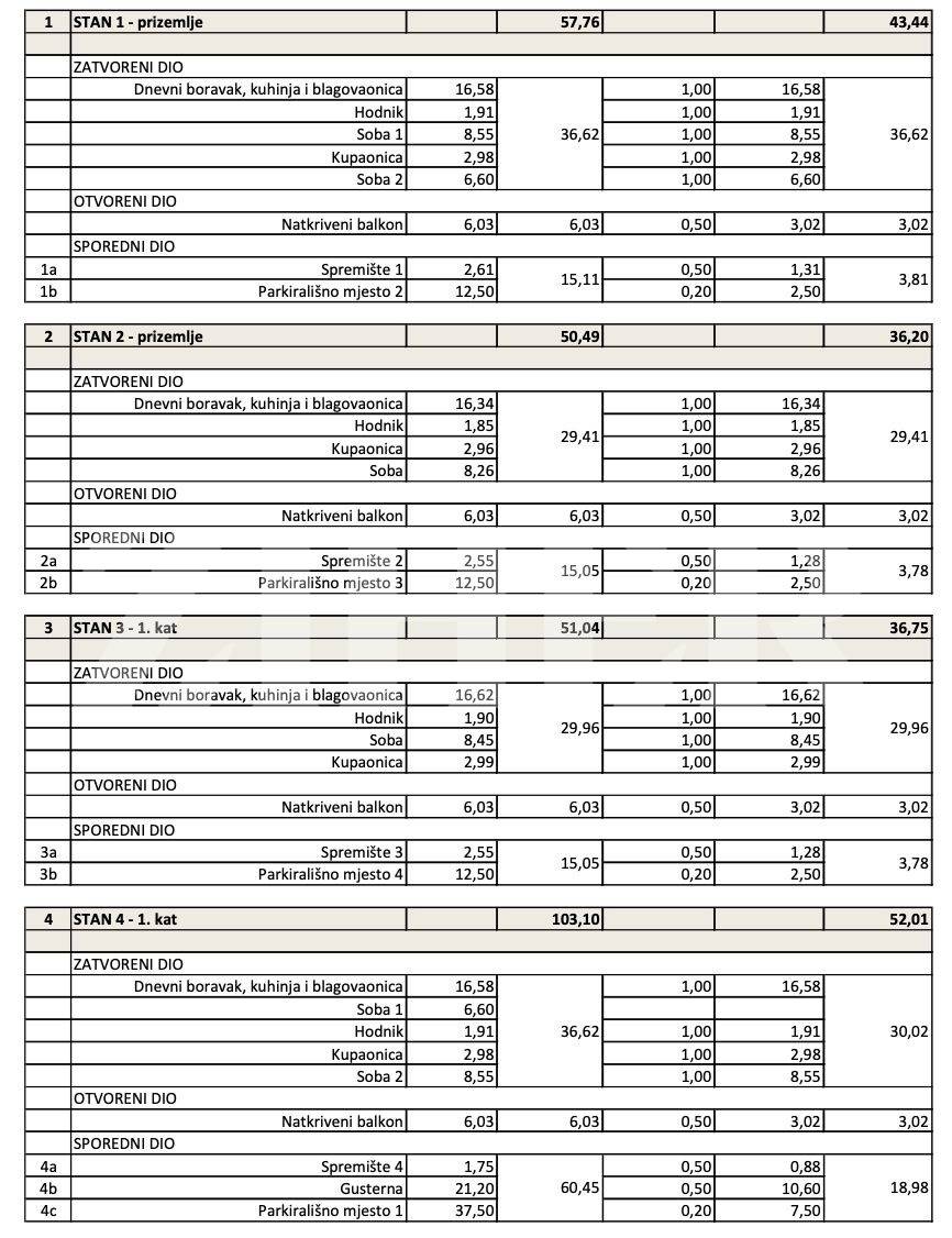 S4 - Dnevni boravak, kuhinja, kupaonica, dvije spavaće sobe, ukupne površine 37 m2 + natkriveni balkon 6 m2 + 2 parkirna mjesta + spremište 2 m2 + spremište 21 m2 = 200.000 eura