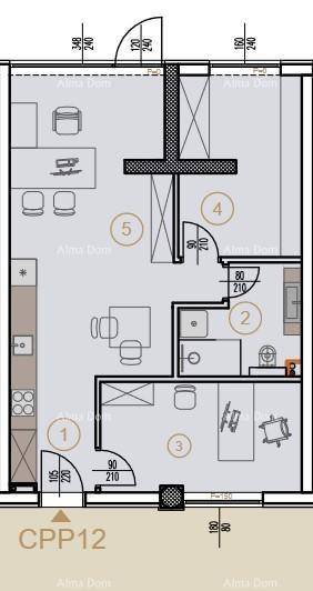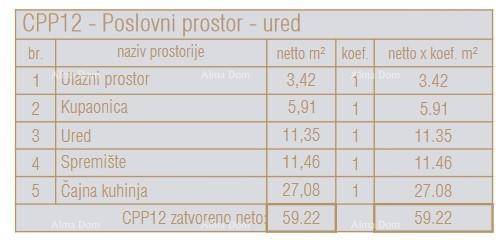 Poslovni prostor CPP12, nalazi se u prizemlju centralne jedinice zgrade. Sastoji se od ulaznog prostora, kupaone, ureda, spremišta i čajne kuhinje.