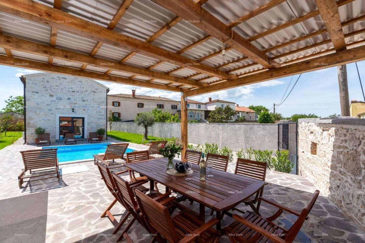 Prelijepa kuća u istarskom stilu, s privatnim bazenom, nalazi se na lijepoj i mirnoj lokaciji.