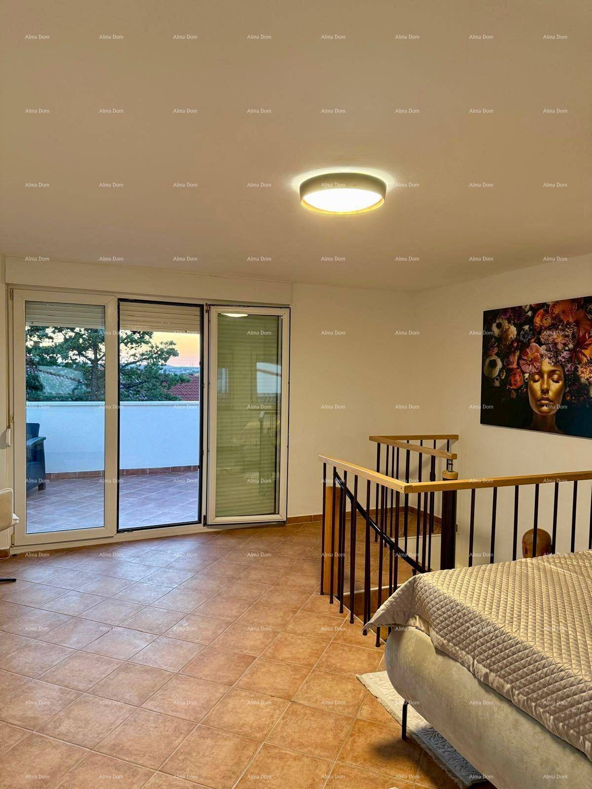 Drugi apartman ima zaseban ulaz i prostire se na dvije etaže. Na prvoj etaži nalaze se dnevni boravak s kuhinjom, spavaća soba i kupaonica. Unutarnje stepenice vode na drugu etažu, gdje se nalazi još jedna spavaća soba i terasa s vanjskim stepenicama koje vode na krovnu terasu s prekrasnim pogledom na more i Medulin.
