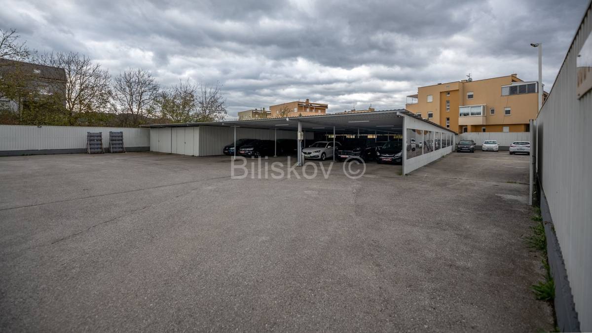 Površina zemljišta je 1.858 m2, asfaltirano je u cijelosti, ograđeno novom ogradom visine oko 2,20 m i osvijetljeno je reflektorima. Na parkiralištu se nalazi i nadstrešnica za smještaj 80 vozila. Nadstrešnica je osvijetljena s 40-tak neonskih svjetiljki.