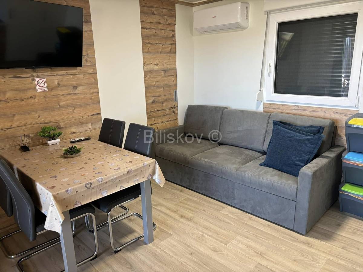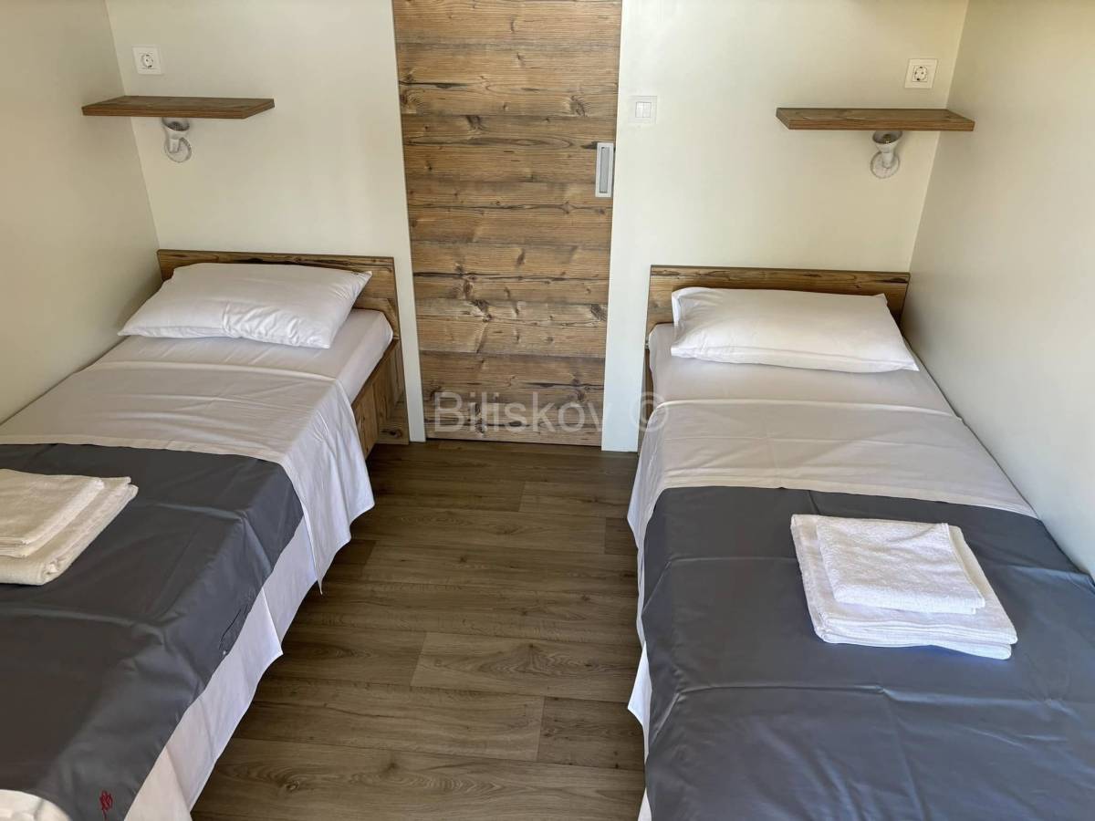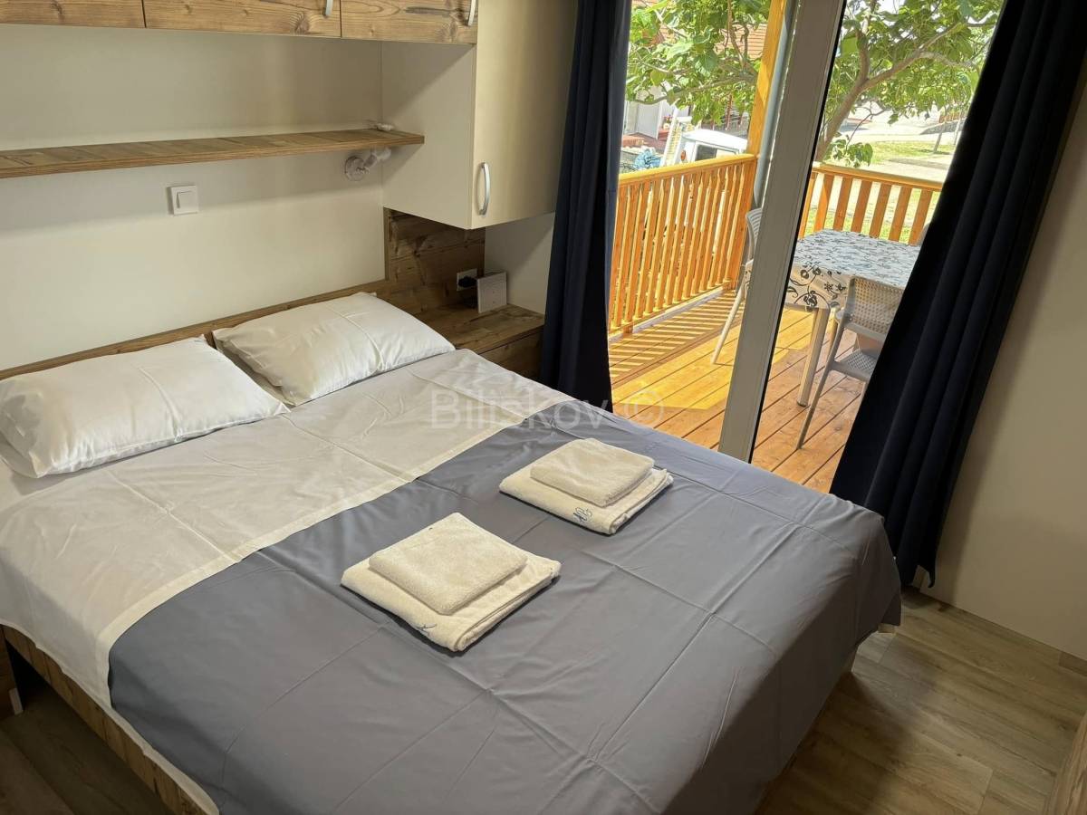 Dvije prekrasne, potpuno nove i opremljene mobilne kućice ukupne bruto površine od 2x60 m² smještene su u kampu uz more. Kućice Kristijan i Paula identične su veličine i nalaze se jedna iza druge. Neto korisna površina svake kućice iznosi 36 m², uz dodatnu natkrivenu terasu površine 24 m².