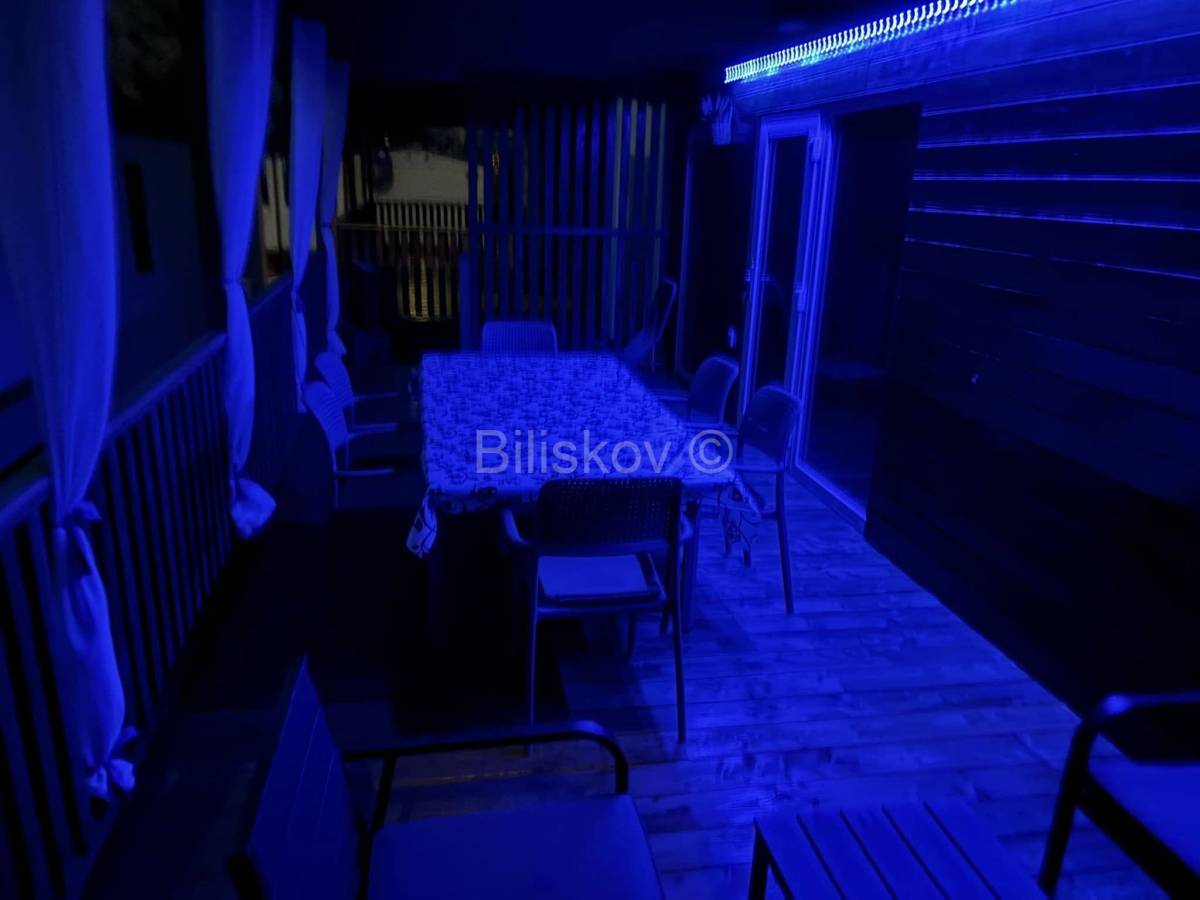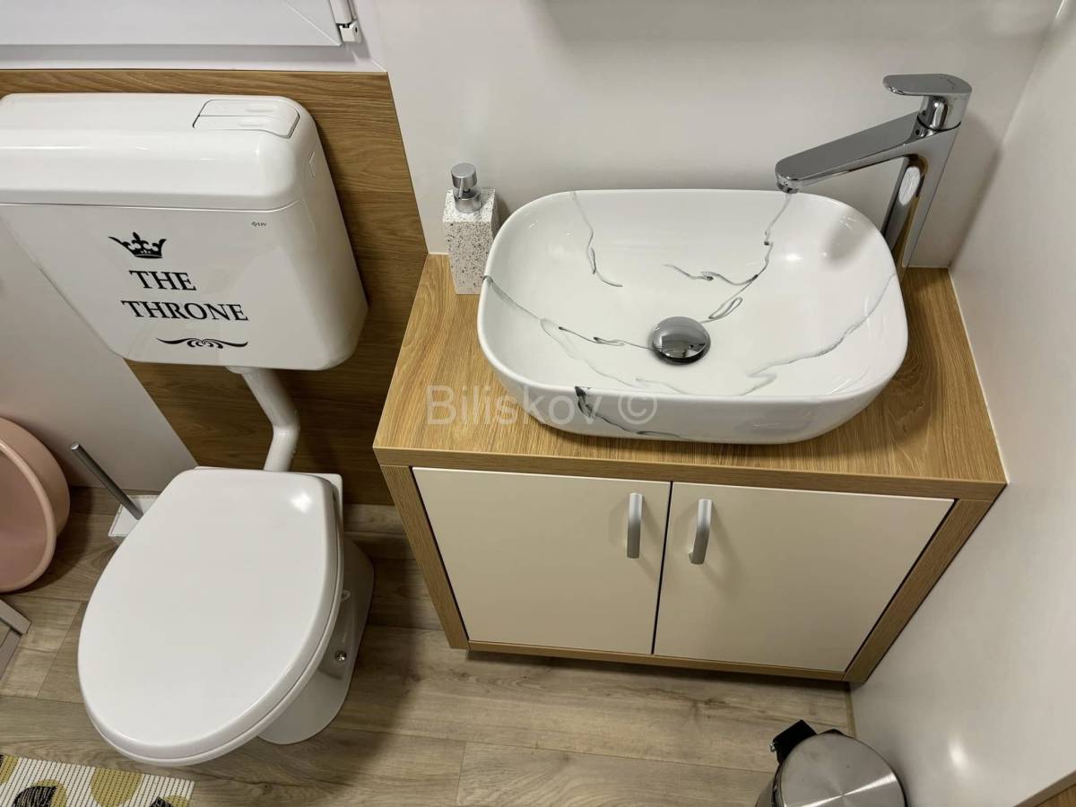 Kuhinja je u potpunosti opremljena svim potrebnim uređajima, uključujući električni štednjak, perilicu posuđa, hladnjak, zamrzivač, mikrovalnu pećnicu, aparat za kavu, toster, kuhalo za vodu i mikser. U dnevnom boravku nalazi se blagovaonski stol i kutna garnitura na razvlačenje, prilagođena za djecu do 12 godina. Svaki prozor kućice opremljen je komarnicima, a prostorije imaju stropnu ventilaciju.