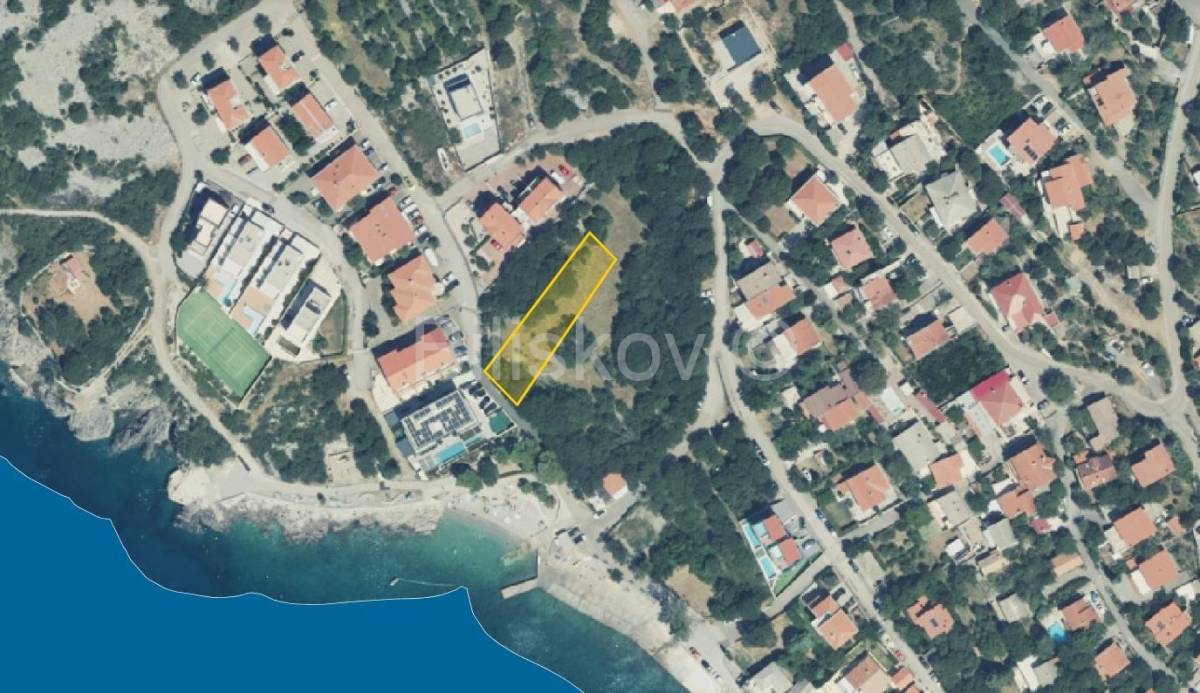 Atraktivna građevinska parcela površine 795 m² smještena je u drugom redu do mora, u mirnom dijelu mjesta. Zemljište ima vrlo dobru poziciju te predstavlja odličnu priliku za izgradnju obiteljske kuće ili manje stambene zgrade.