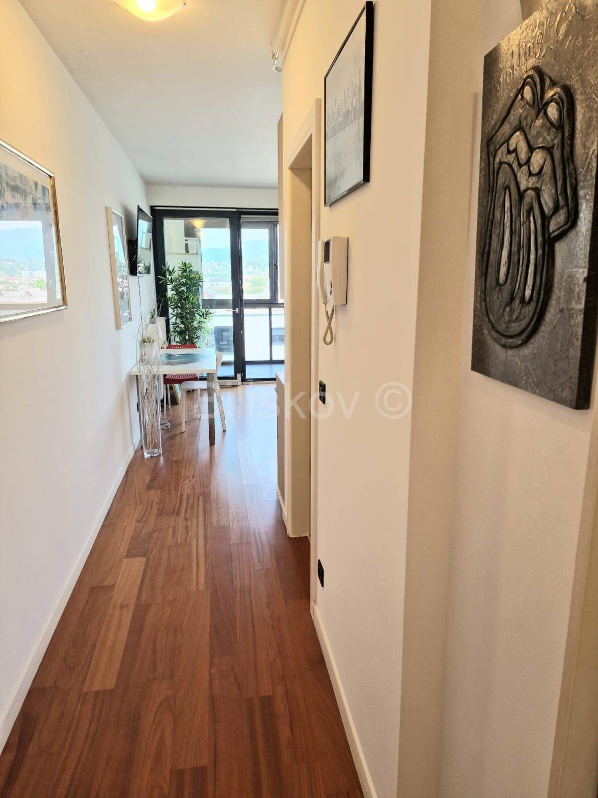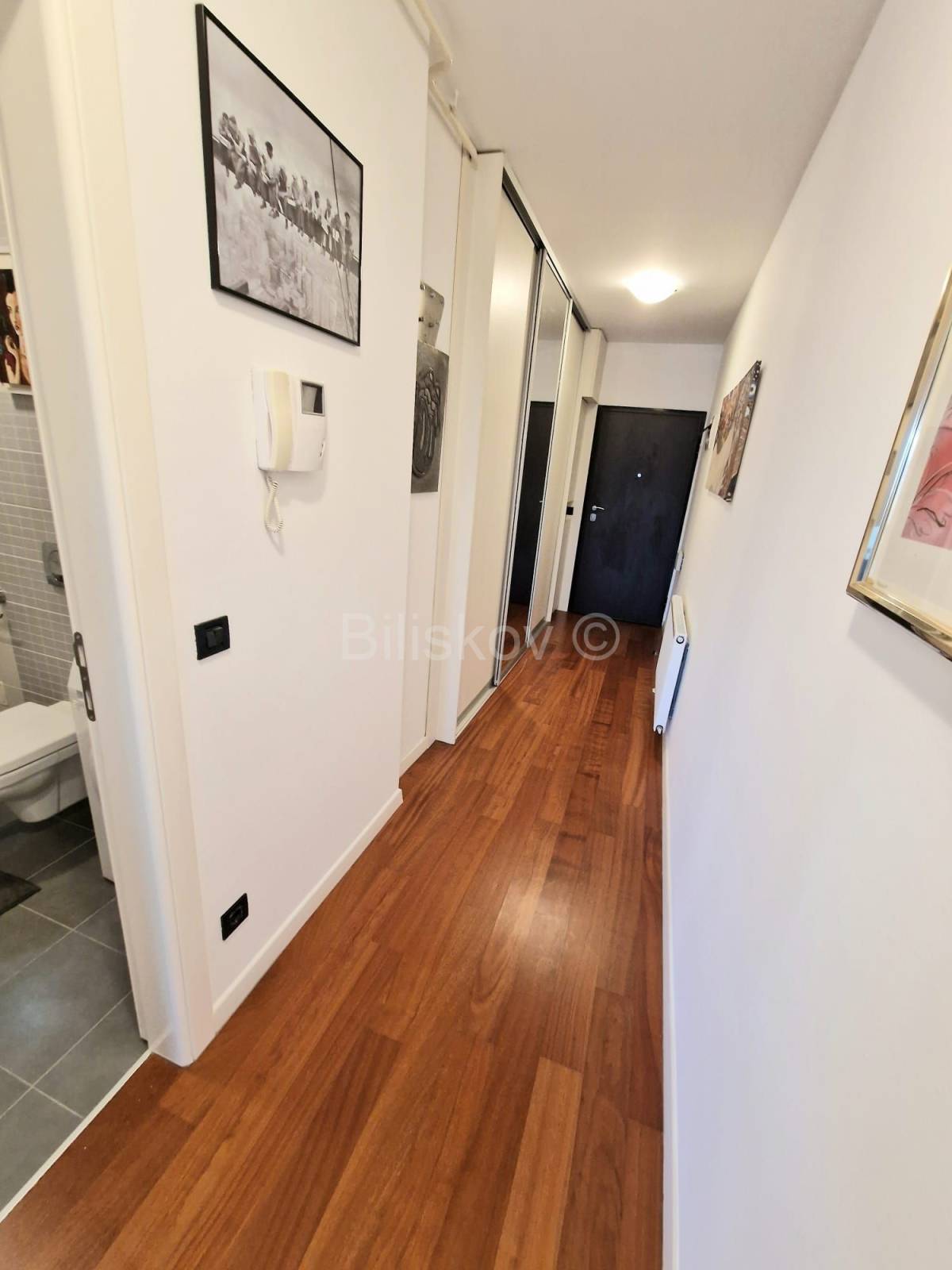 Stan je potpuno novo namješten, a zadnja adaptacija je bila 2023 godine. Cijeli namještaj je po mjeri (veliki ugradbeni ormar od 4 metra s ogledalom na ulazu, moderna kuhinja i "šank-blagavaona"). Opremljen je protuprovalnim vratima, aluminijskom stolarijom sa roletama na struju, parketima i keramikom ekstra klase, sanitarijama prve klase, TV-om od 130cm, Bosch perilicom za posuđe i Gorenje perilicom za rublje.